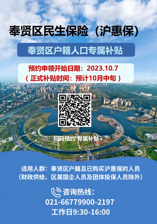 1、本次补贴发放的范围为奉贤区户籍人口且已参保沪惠保的人员(财政供给、区属国有企业人员及团体投保人员除外)。