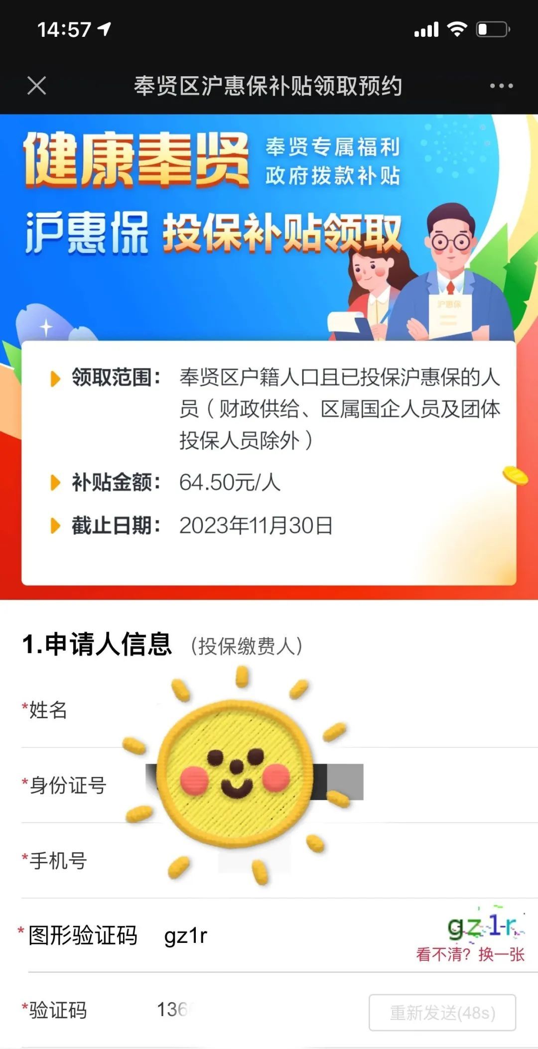 @奉贤区户籍市民 您购买“沪惠保”了吗? 如果已经买了 那么现在可以开始预约申领补贴啦 ↓↓↓ 第一步:扫码进入申领页面 第二步:进入登录页面 第三步:填写申请人信息 第四步:直接调用个人信息进行申领