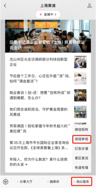 登录“上海黄浦”微信公众号,点击“指尖服务”菜单