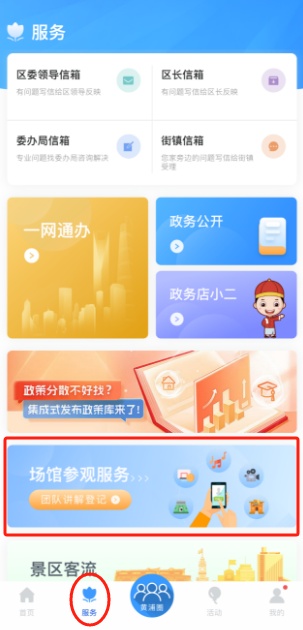 1.请通过下载“上海黄浦”APP,点击“服务”版块或登录“上海黄浦”微信公众号“指尖服务”菜单,点击“场馆参观”专页进行预约登记,后台将有专人确认预约信息。
