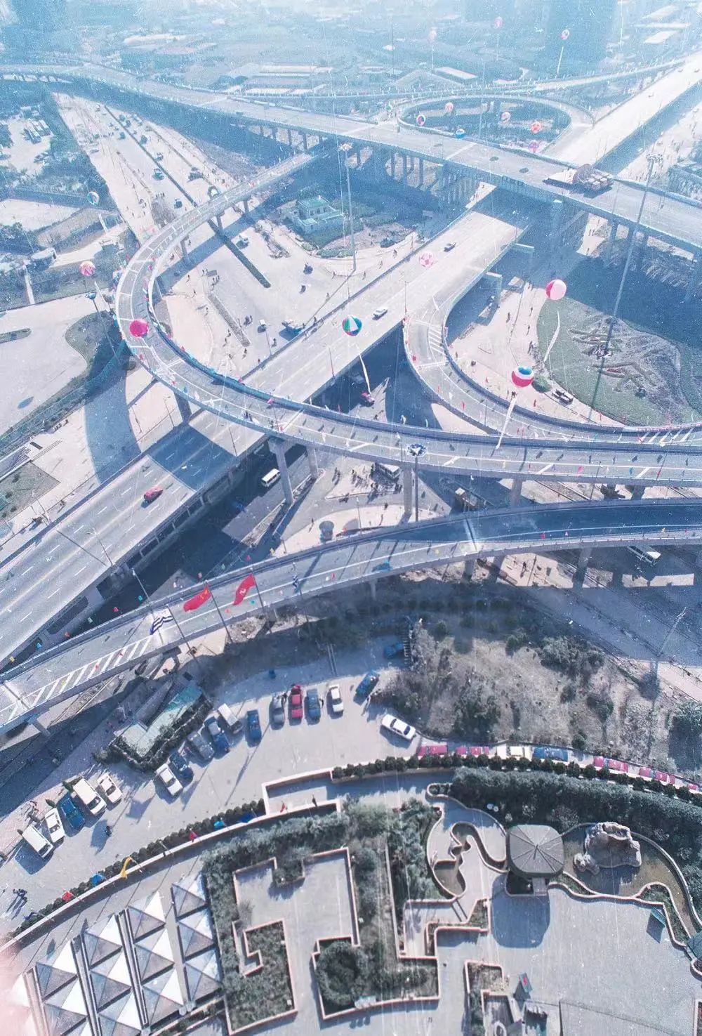 1994年12月7日,即将举办内环线高架通车典礼的漕溪路立交现场(华亭宾馆俯拍视角) 图片摄影 | 陆杰