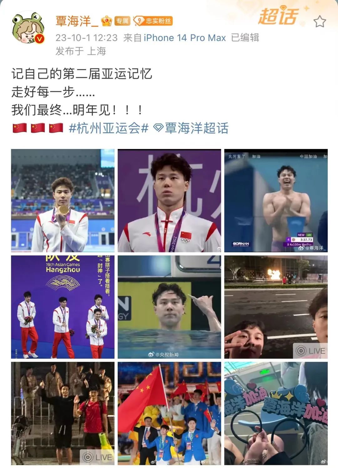 “这是我第二次亚运会,上一届我不够圆满,但这一届没有遗憾,收获满满。我也希望在巴黎实现升国旗奏国歌的目标。”