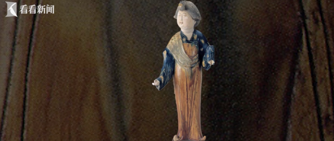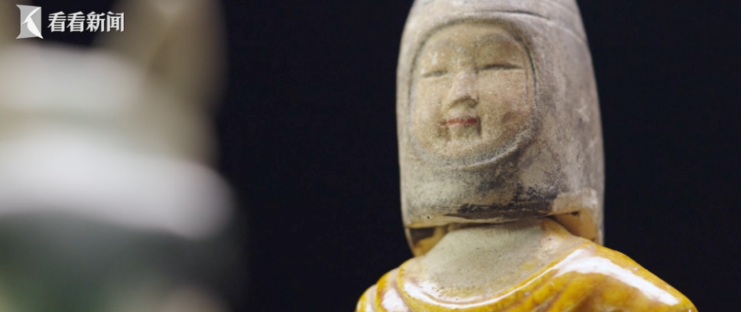 上海博物馆陶瓷部副主任、副研究馆员陈洁介绍,胡服常见的蹀躞七事,腰间系着的笔袋、小刀、针筒,也是男装上常见的配饰。“从陶俑身上我们可以看到当时开放包容的多元社会以及女性社会地位的提升。”