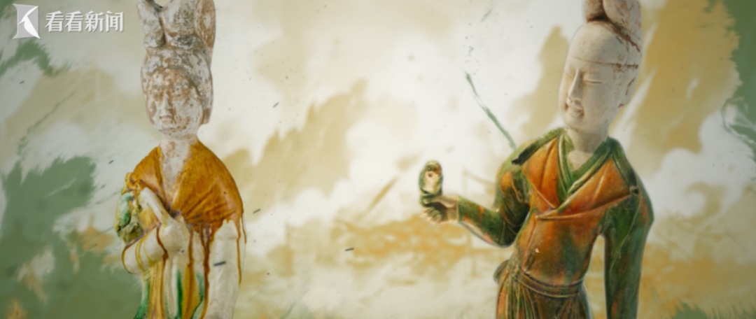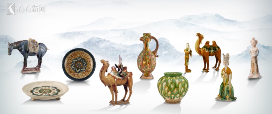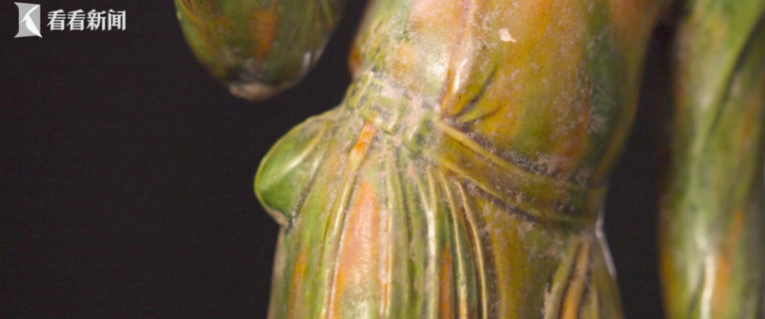 最典型的是绿色、黄色、白色,有些还会加入紫色、蓝色这样不同的色彩交融。陈洁介绍,唐朝在审美上是偏向绚烂色彩的,这应该也是受到了当时胡风和西亚的影响。