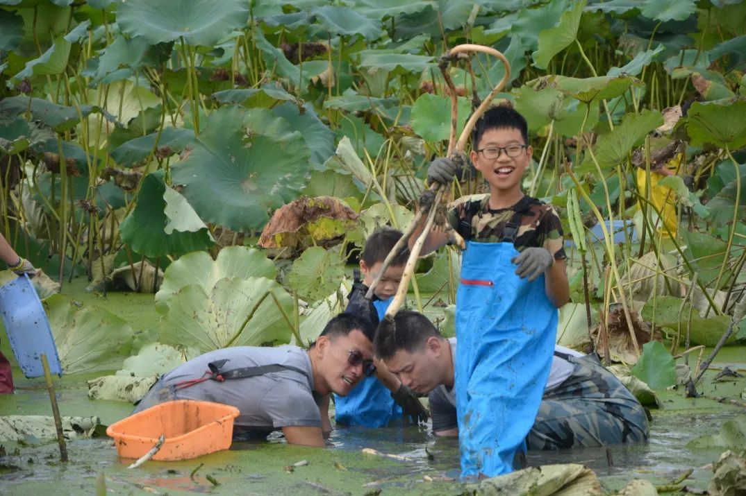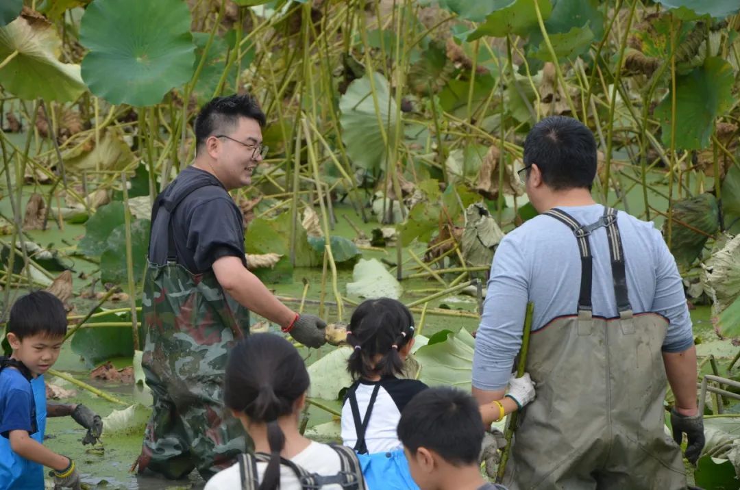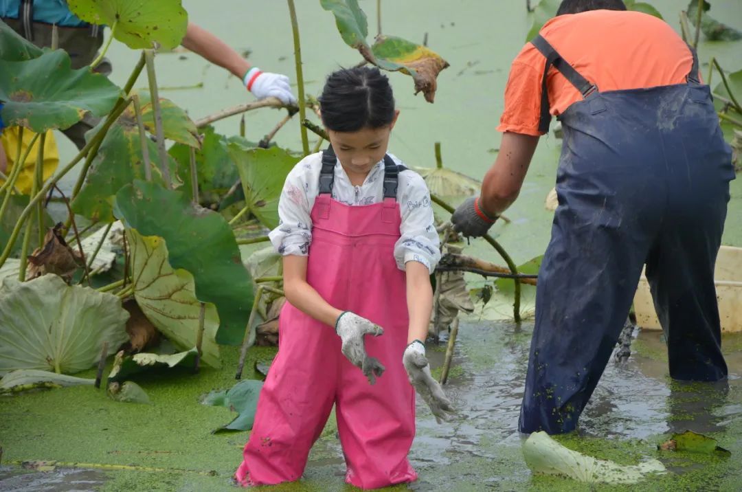 “四个一”研学实践项目秋日系列之 “金秋收获,挖藕半日营农家乐体验”第一场活动顺利开展!为了提供更多样化、深层次、高质量的研学活动,国庆假期期间,金海街道“环金海校外课程联盟”借着秋日的宁静和丰收的喜悦,组织青少年们在栖贤谷亲子乐园体验田园生活的乐趣。 科普讲解 莲藕长在哪里?它有什么功效?藕有几个孔?几孔藕最好吃? 集合完毕,农场老师为孩子们科普了莲藕的相关知识,讲解了挖藕的注意事项:用手轻轻拨开泥土,找到块茎的位置。使用小锄头或手工具小心地将块茎挖出,避免伤到块茎。挖藕时,要注意不要损坏植物其他部分,以保护生态平衡。挖到的莲藕,可以清洗干净,带回家制作美味的藕菜。 池塘挖莲藕 掌握了一定的知识后,孩子们和爸爸妈妈们都已经跃跃欲试了。平日里酷爱干净的孩子丝毫不介意泥泞的池塘,穿上防水裤,戴上手套就想直接冲进池塘撒欢了~但实际上,泥潭并没有想象中那么好走,一不小心可能就会陷在泥地里“不可自拔”。 孩子们拿着小工具,深一步浅一步地前行,小心翼翼地蹲下,充满好奇地弯腰摸索,小手轻轻触摸泥土,寻找莲藕的踪迹。当他们终于感觉到莲藕的存在时,脸上露出了兴奋和期待的神情,轻轻拨开泥土,让莲藕一点一点从淤泥中露出它们的身影。藕节娇嫩而坚韧,一不小心就会断裂,大朋友小朋友们都非常小心,有的长藕还需要几人协作,这样才能挖到完整的藕节。 “哇偶!我挖到啦!”他们兴奋地大声喊着。终于挖到了,他们的脸上洋溢着满足的表情,这是他们亲手劳动的成果。 挖藕活动不仅可以让孩子了解食物的来源,从而更加珍惜食物,还让大家亲身感受劳动的快乐和收获的喜悦。 浑水捉泥鳅 捉泥鳅时间到了,孩子们排队领取了存放泥鳅的容器。 小朋友们小心翼翼地在水域里走动,小手轻轻摸索水底,试着感受泥鳅的位置,用最轻柔的动作去抓泥鳅,生怕它们逃走。 刚开始大家还有些害怕,不敢用手直接去抓泥鳅,慢慢地大家开始熟练起来,胆子也渐渐大了起来,有的小朋友一不小心摔了一下,池塘里充满了欢声笑语。 不仅如此,孩子们惊喜地发现农场里有可爱的小动物喂食,有石磨豆浆,还有老式的爆米花机,许久不见这些儿时“老玩具”的爸爸妈妈们也显得格外激动,纷纷向孩子们介绍这些“玩具”的玩法,让他们体验父母童年时代的乐趣。 通过本次活动,让孩子们深入了解农村生活,感受农田劳作的辛苦,培养他们对大自然的热爱和保护之心。同时,亲子活动将增进家庭成员之间的交流与亲近,有助于建立和谐的亲子关系和健康的家庭环境。我们希望这个秋天,不仅能让孩子们感受到丰收的快乐,也能在亲子互动中留下美好的回忆。