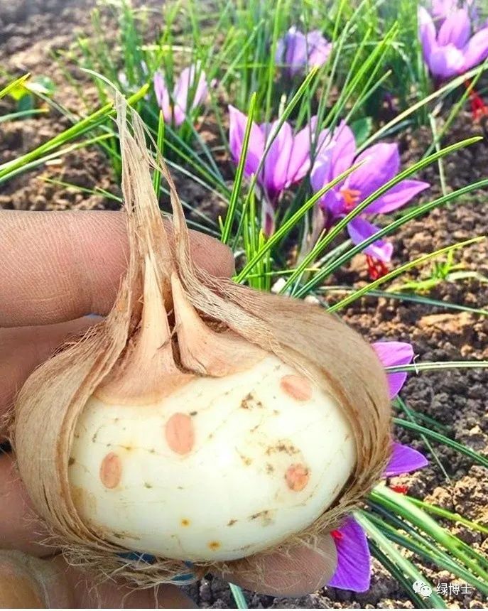 番红花是鸢尾科番红花属的球根花卉。它的球茎扁圆球形,直径约3厘米,外有黄褐色的膜质包被。叶基生,条形,灰绿色,纤细而狭长。它的花茎很短,出土即开花。有淡蓝色、蓝色、紫色、黄色或白色等,具有香味。大家最为喜欢的是橙红色花柱,有较高的药用价值。番红花耐寒性很好,可以在室外露地过冬。