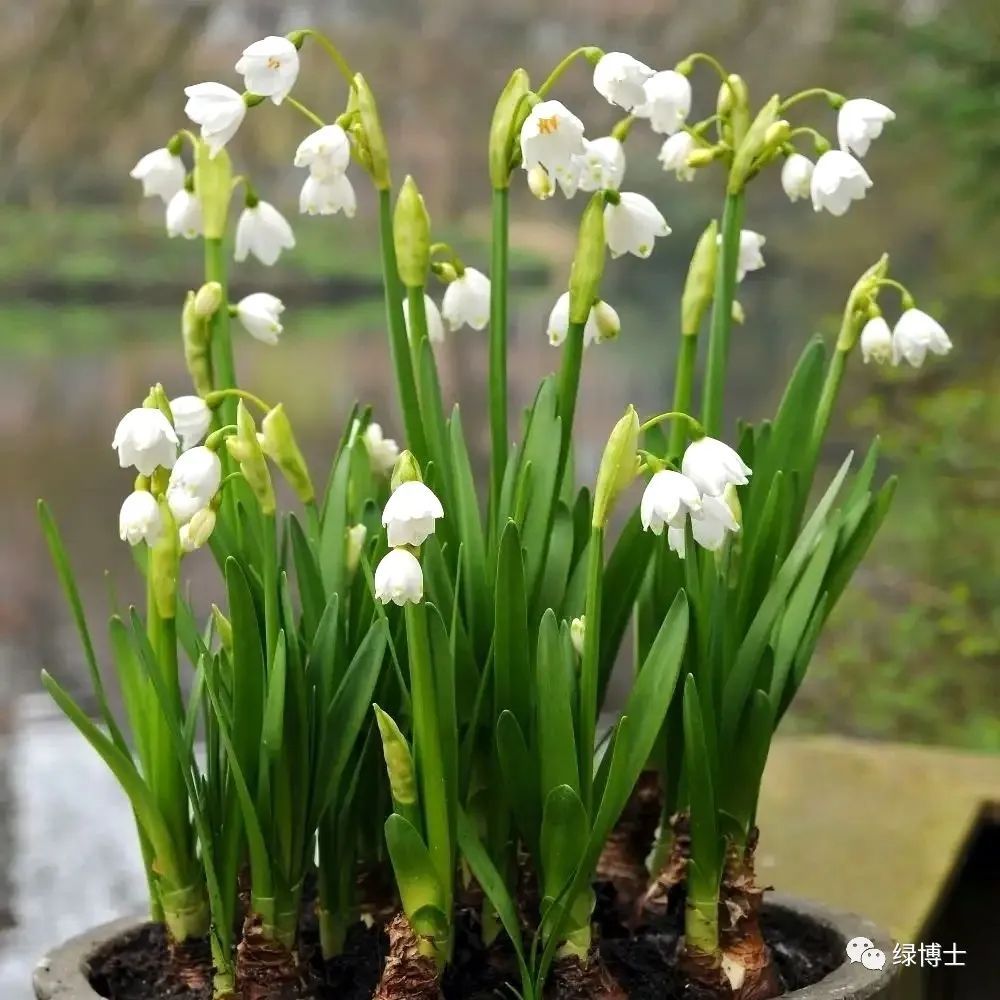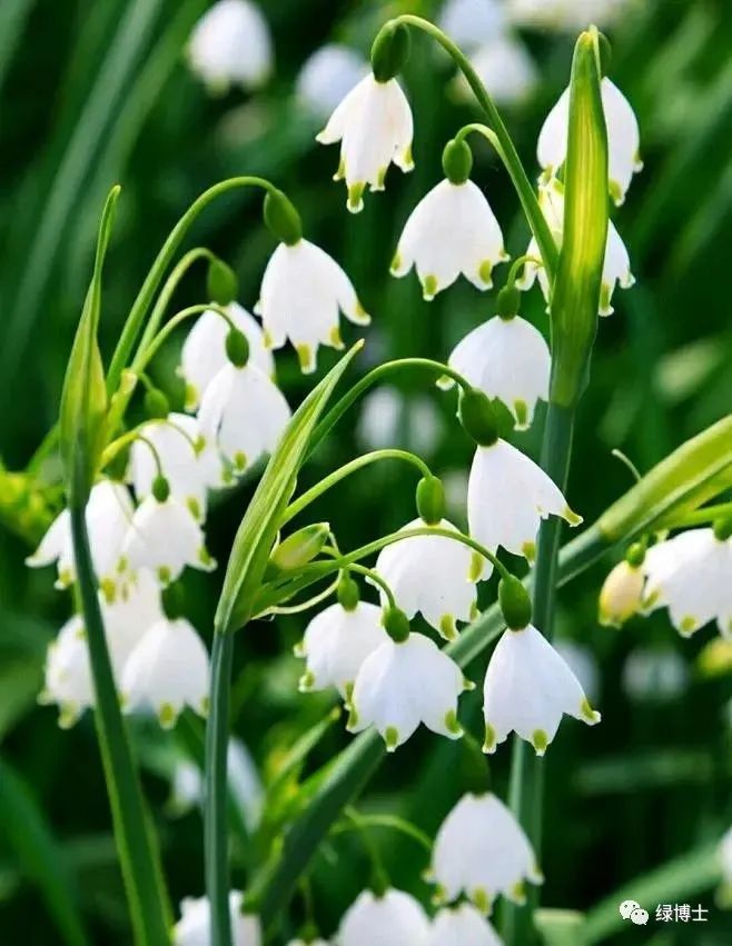 雪片莲是石蒜科、雪片莲属的球根花卉。它鳞茎娇小,呈球形,株高30厘米左右。叶片和洋水仙近似,带状,外被白粉。花茎的顶端总苞内,洁白的钟形花冠恰似一串串小铃铛;每片瓣尖的边缘处还有一绿色的斑点。