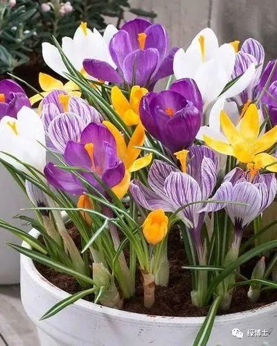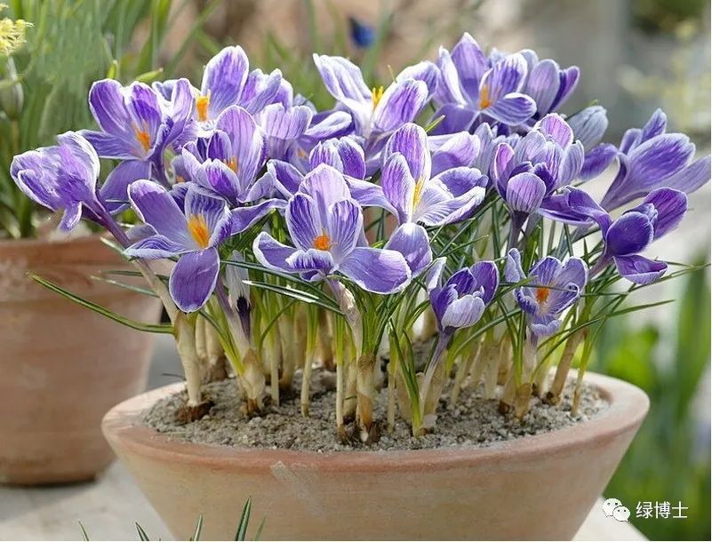 家庭播种番红花观赏宜深栽,盆底装好底土、基肥后即可将种球放入,在花盆里为番红花的生长提供种球高度1~2倍的深度;种球在花盆内宜密集排列。它的植株高度较矮,花梗短,开花的时间比较整齐,是春季中不可多得的蓝色调开花植物。