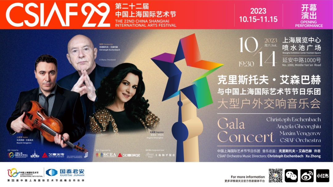 第二十二届中国上海国际艺术节将于10月15日至11月15日盛大回归。作为今年艺术节开幕演出之一,14日晚,世界顶尖指挥家克里斯托夫·艾森巴赫将执棒中国上海国际艺术节节日乐团,在上海展览中心的喷水池广场奏响新声。