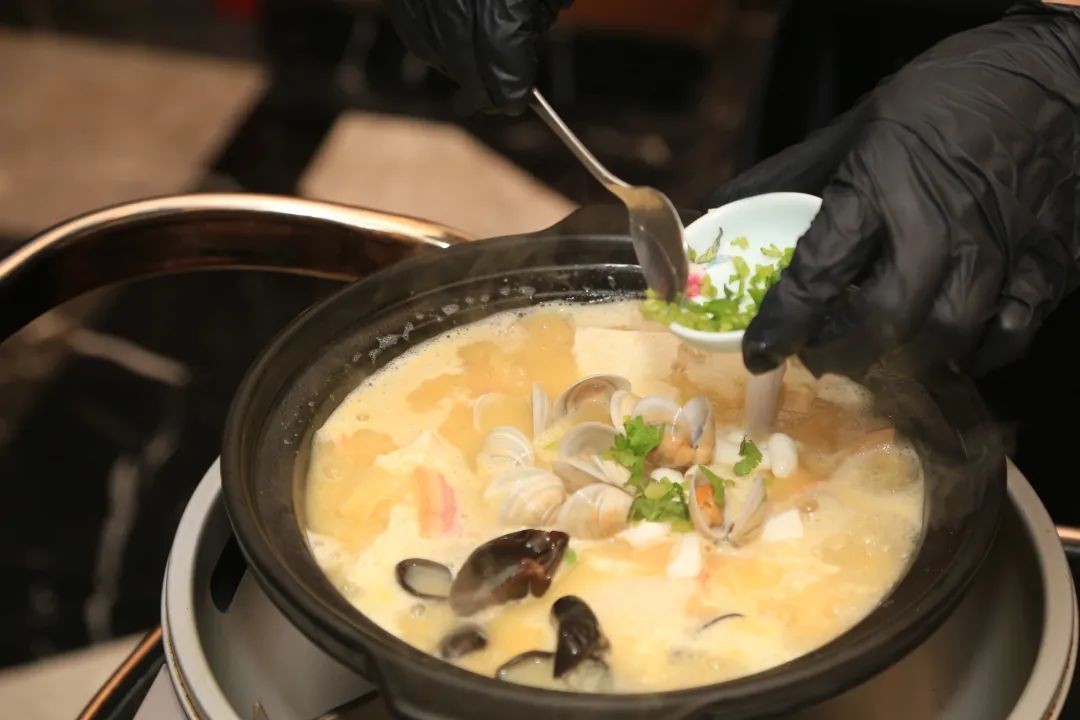 步骤六:一煲色香味俱全的海鲜手工豆腐煲就制作完成了。