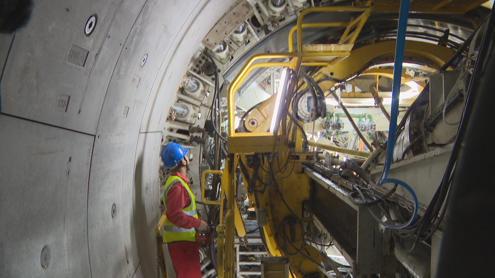 今天上午,记者来到轨交18号线二期(江杨南路站至爱辉路站区间)工地,也是未来的轨交18号线江杨南路站,目前,“申承一号”盾构机已经成功始发,正线隧道进入管片拼装环节,不同于以往采用传统螺栓拼接的方式,过程中需要工作人员拧紧螺栓固定成环并完成隧道成型。应用预埋承插式管片的过程中,工作人员只需要遥控拼装机,就能完成两块管片的拼装。这一管片工艺类似中国古建筑中的榫卯结构,管片设计上包括有凹凸的设计,采用凹凸结合的连接方式,将管片紧密拼插在一起,省去人工拧螺栓的步骤,在连接头设计、以及拼装操作等环节,都能做到精准化匹配、标准化操作,既节省了人力,成环精度也进一步提升,减少了渗漏水等情况的发生,此外,还能提高隧道的抗变形能力,提升隧道环形的受力性能,极大地减轻后期隧道运维的压力。