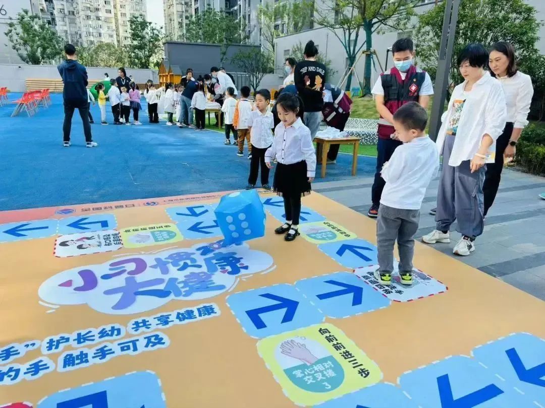 活动现场,小小观察员、跳格子等多项互动游戏,寓教于乐,让小朋友在做游戏的过程中学习手卫生常识,争当健康小卫士。