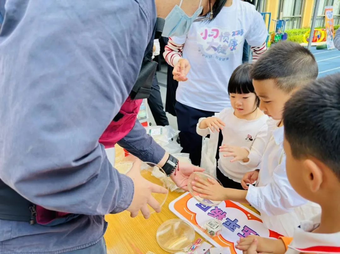 “小朋友,先用没洗过的手在这个盘子里按下手印,把小手洗干净后,再在另一边的盘子里也按下手印,明天你们就能看到,盘子里发生了奇妙的变化哦!”活动现场,小朋友们在工作人员的协助下,陆续在一个“神奇”的平皿里按下手印。