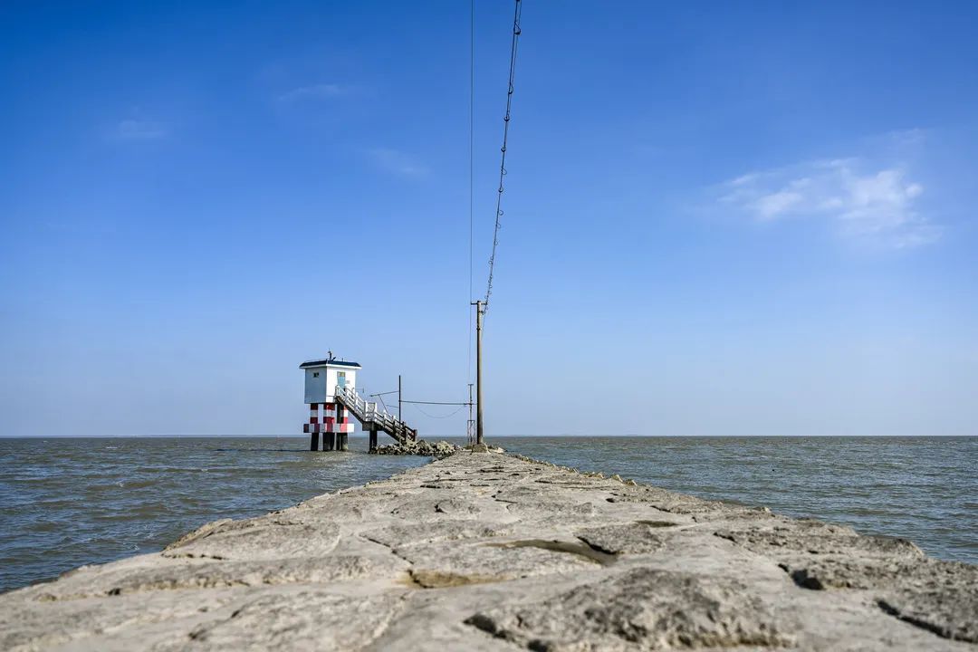 一年四季,这座塔静静地矗立在江心,在芦苇和海面的衬托下,展现出宁静、恬淡的美好光景。白天,碧蓝的天空下,小白塔与熠熠生辉的江水相映成趣;傍晚,夕阳余晖下的江面波光粼粼,为它笼罩了一层神秘的“面纱”。