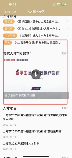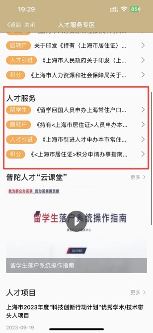 “普陀人才‘云课堂’”服务,提供【留学生落户系统操作指南】【留学生落户公函填写指南】【海外人才居住证操作指南】【官方学历认证干货】等6则视频学习资料。