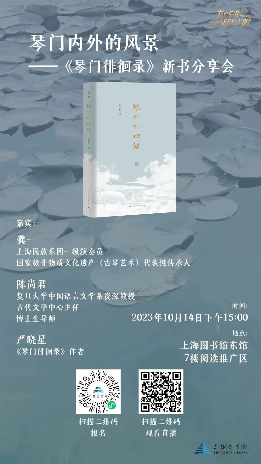 10月14日下午3点,严晓星将与古琴大师龚一、复旦大学中国语言文学系资深教授陈尚君一同做客上海图书馆东馆,和读者们聊聊琴门内外的风景。