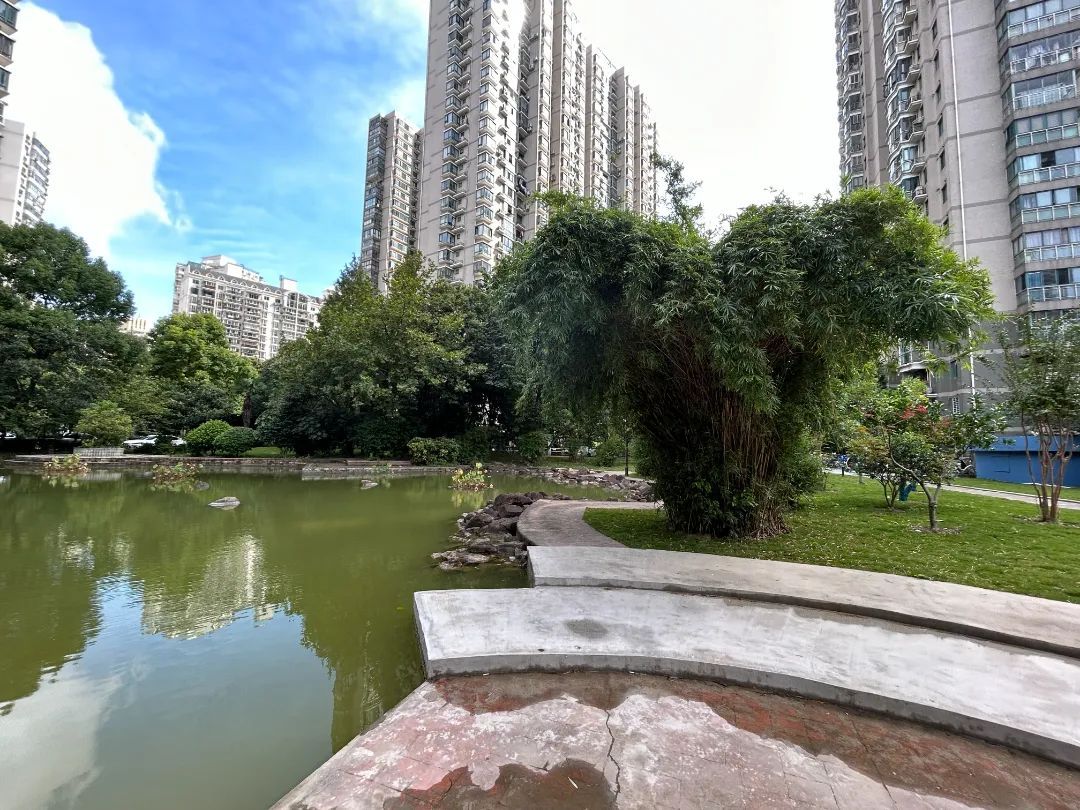 现在的中心绿地,湖光掠影,草木清新,一派宜人景象。“你看这棵柿子树已经长出柿子了。”陆兆平指着绿地内的树木对记者说,“这些移植来的树木,有紫薇、枣树、柿子树、桂花树等,都是原来没有的。先前周边都是乱糟糟的杂草和垃圾,没什么美感,改造后的绿地,整体面貌提升了,这些树木也显得更有生机了。”