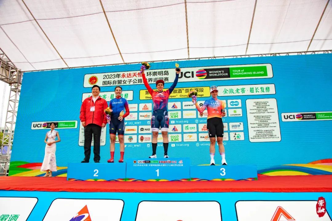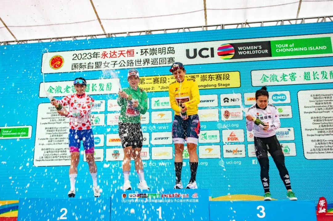 经过激烈的比拼,来自李宁之星女子自行车队的汉纳·谢拉赫以3小时18分11秒的成绩获得了崇东赛段的冠军。她的总成绩也因此上升至首位,穿上了象征个人总成绩第一的黄衫。