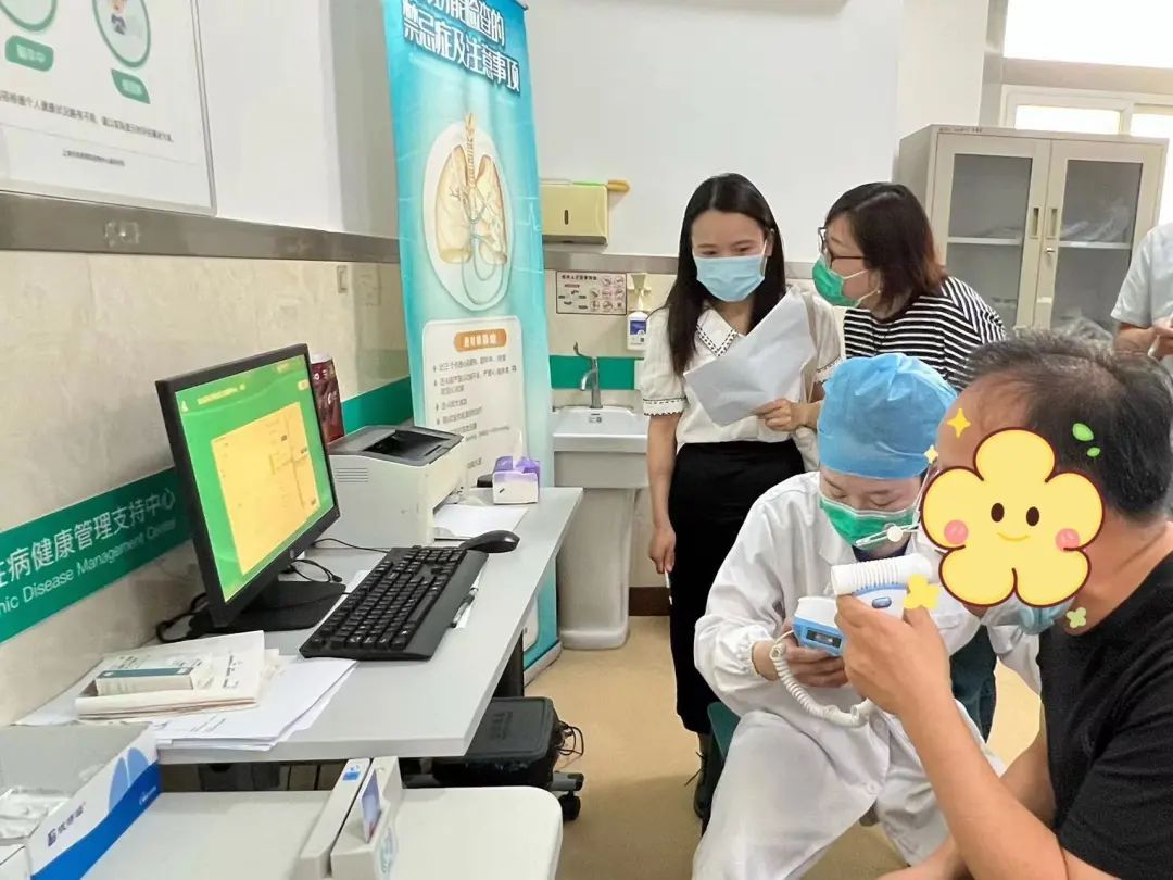 为进一步提升社区慢性病健康管理服务能级,杨行镇社区卫生服务中心积极开展社区慢性病健康管理支持中心建设工作,针对高血压、糖尿病、脑卒中、慢阻肺、大肠癌、骨质疏松等慢性病患者和健康风险评估对象,提供身高、体重、腰腹围、血压、血糖、肺功能、大肠癌筛查等检测,利用测量数据自动抓取、大屏综合数据展示等技术,提供智慧化服务,开展精准化综合风险评估、疾病筛查、诊疗干预、随访管理等服务。