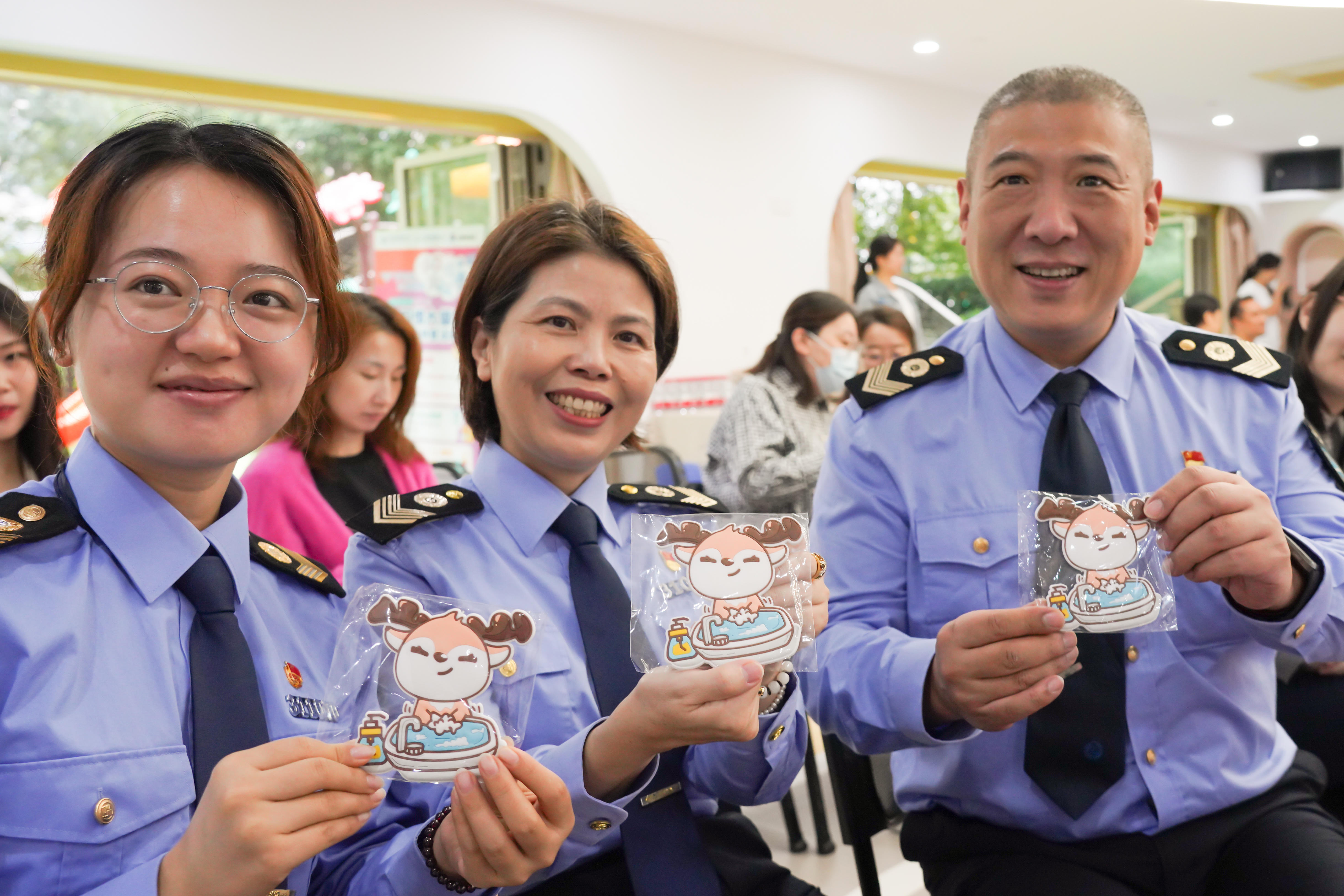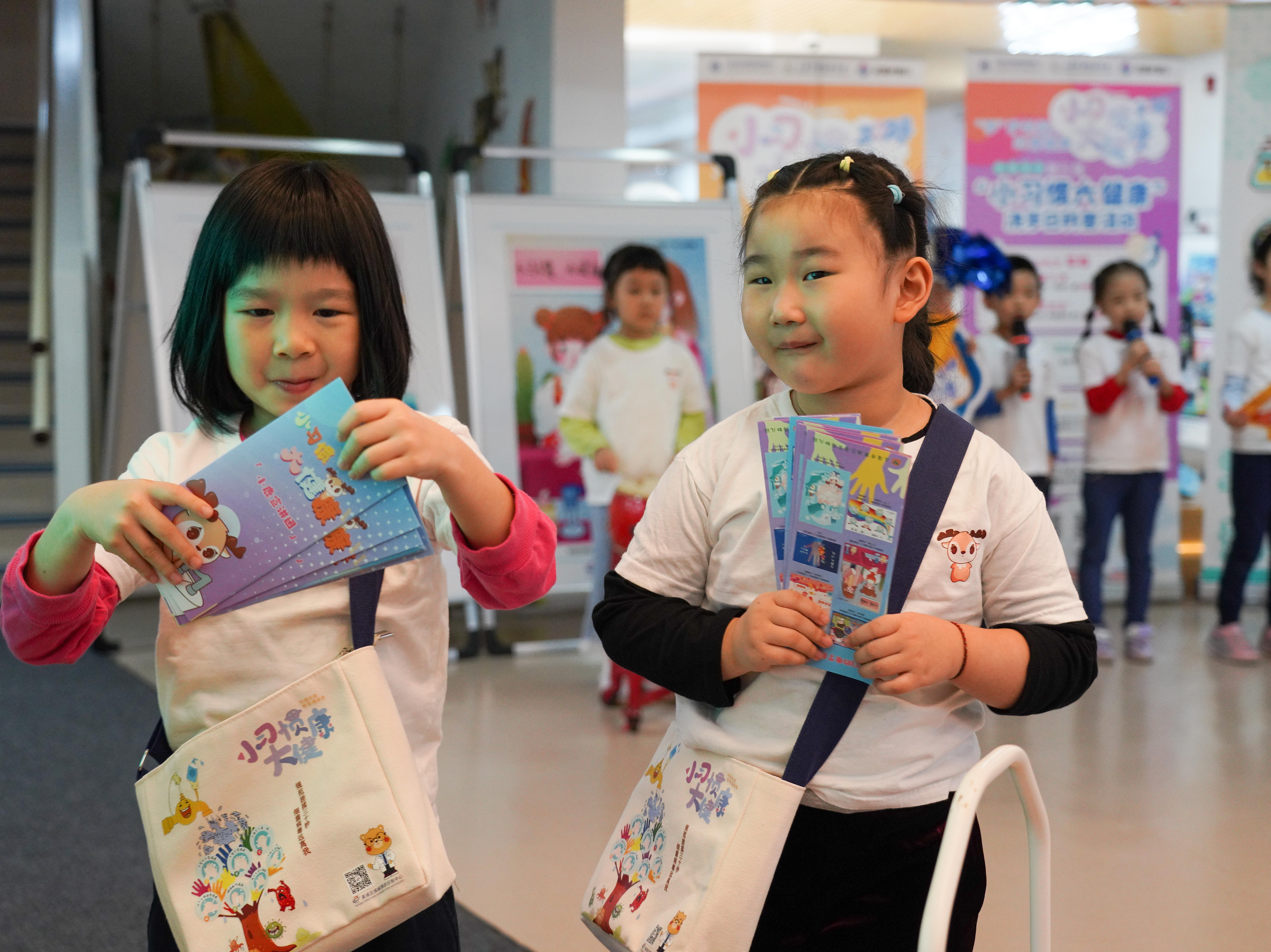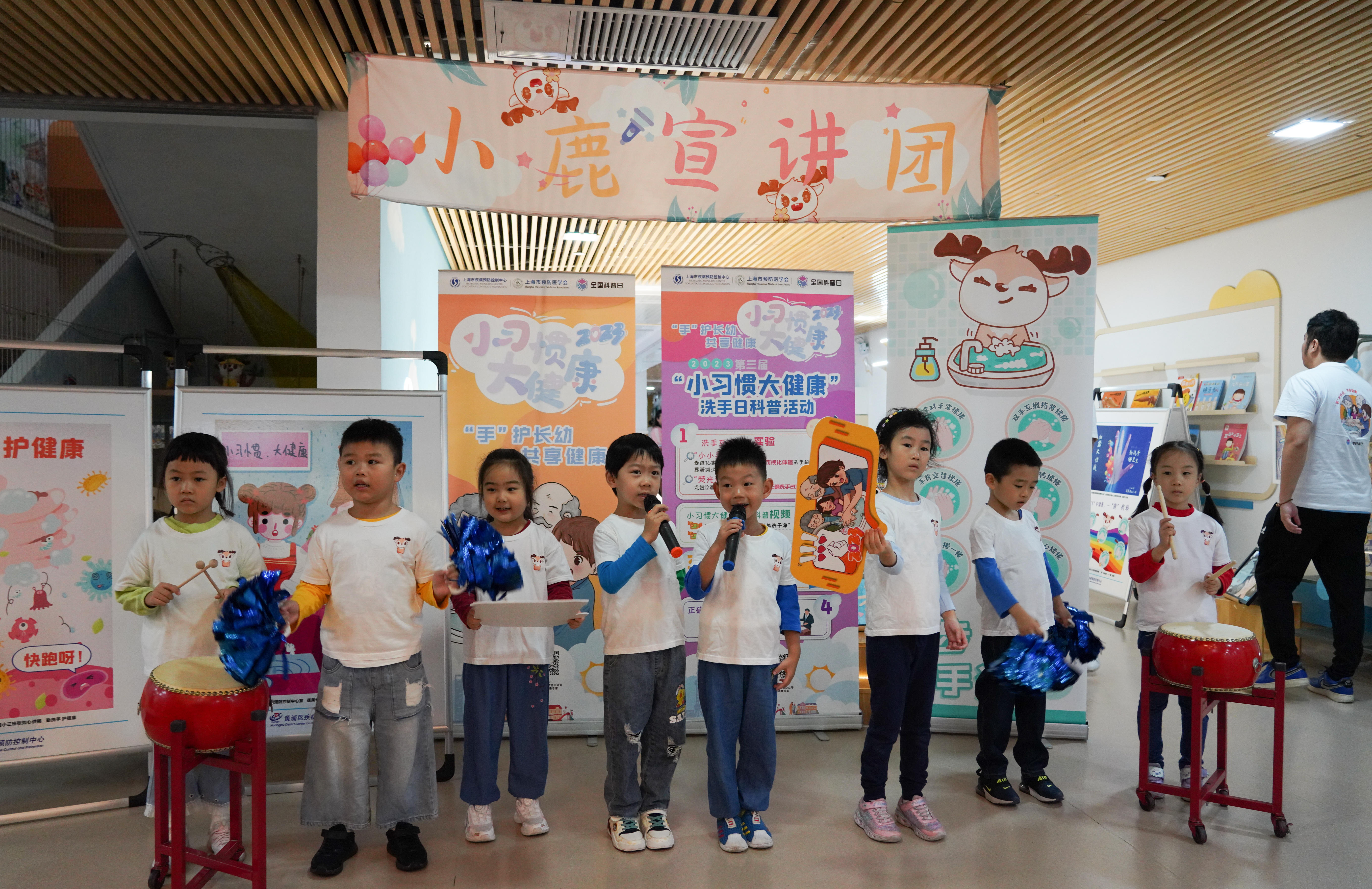 活动现场,一幅幅生动有趣的宣传海报吸引许多嘉宾驻足观看,小小讲解员们正在为大朋友、小朋友们介绍。蓬莱路幼儿园大班还组建了一支宣讲团,孩子们用朗朗上口的儿歌向弟弟妹妹以及路人宣传养成良好洗手习惯对健康的重要守护作用。