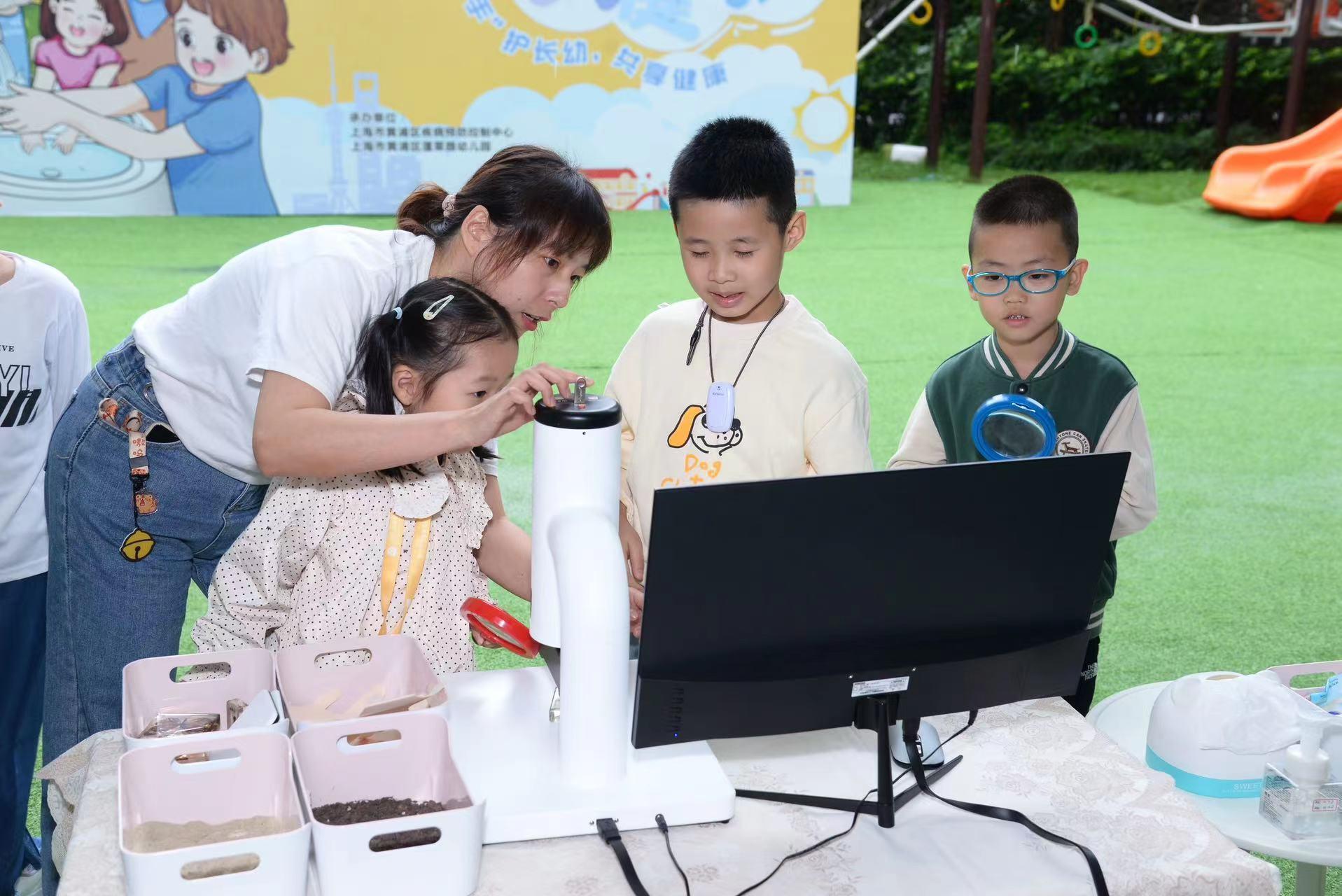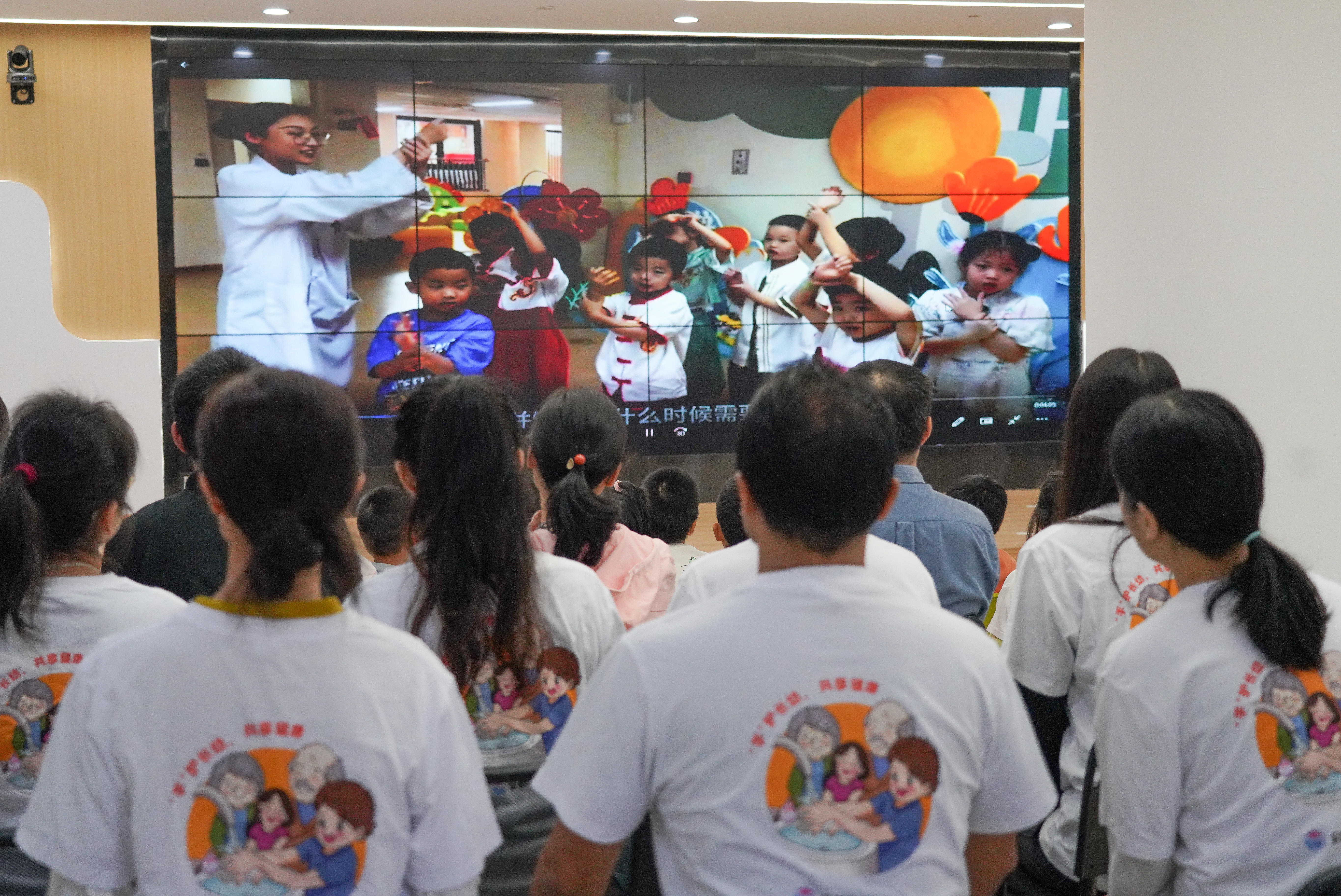 洗手这件事在幼儿园里不仅仅是一种学习,还是一种探索,一种游戏。互动环节,一堂由社区医生带来的卫生课,一场互动木偶剧,一幅“画不完的画”,多个有趣的科学小实验和互动游戏,吸引了孩子们和家长的热烈参与。