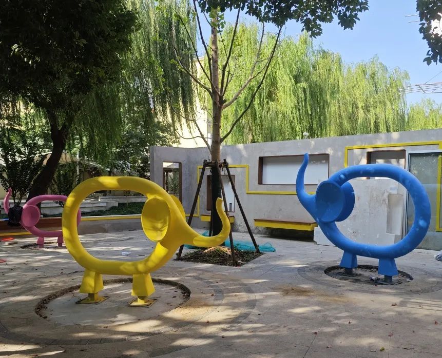 除了业已打造的“律动协和”“绽放好时光花境”景观小品,位于桃花水岸北侧与福泉路交会处的陆家浜生物多样性科普角也初具形态。大小不同、颜色各异的小象造型座椅,将这处空间装扮得灵动童趣。结合陆家浜良好的水岸生态环境,这里将设置一面生物多样性互动墙,配备休闲座椅、解说牌,方便居民乐享生态科普。