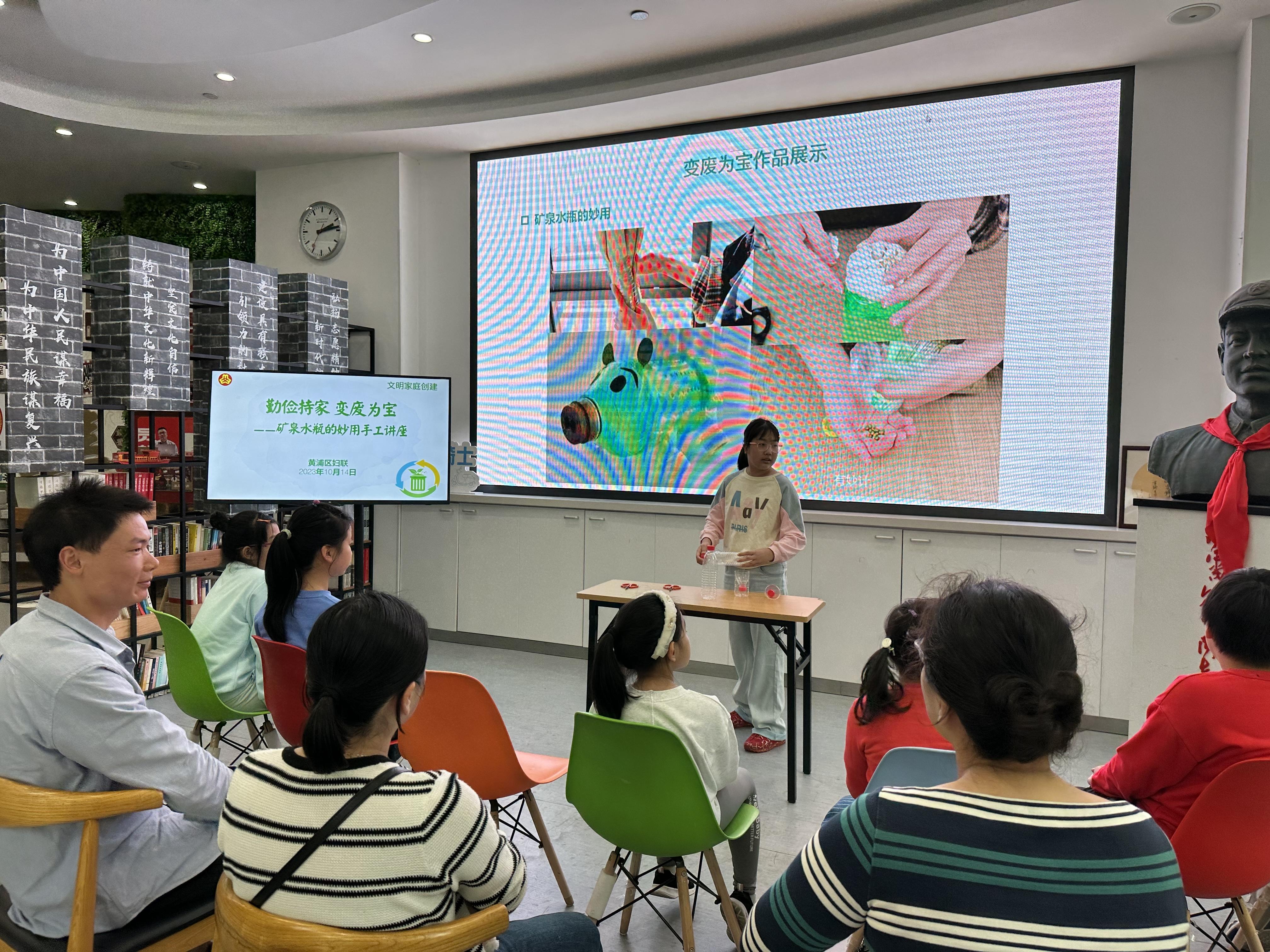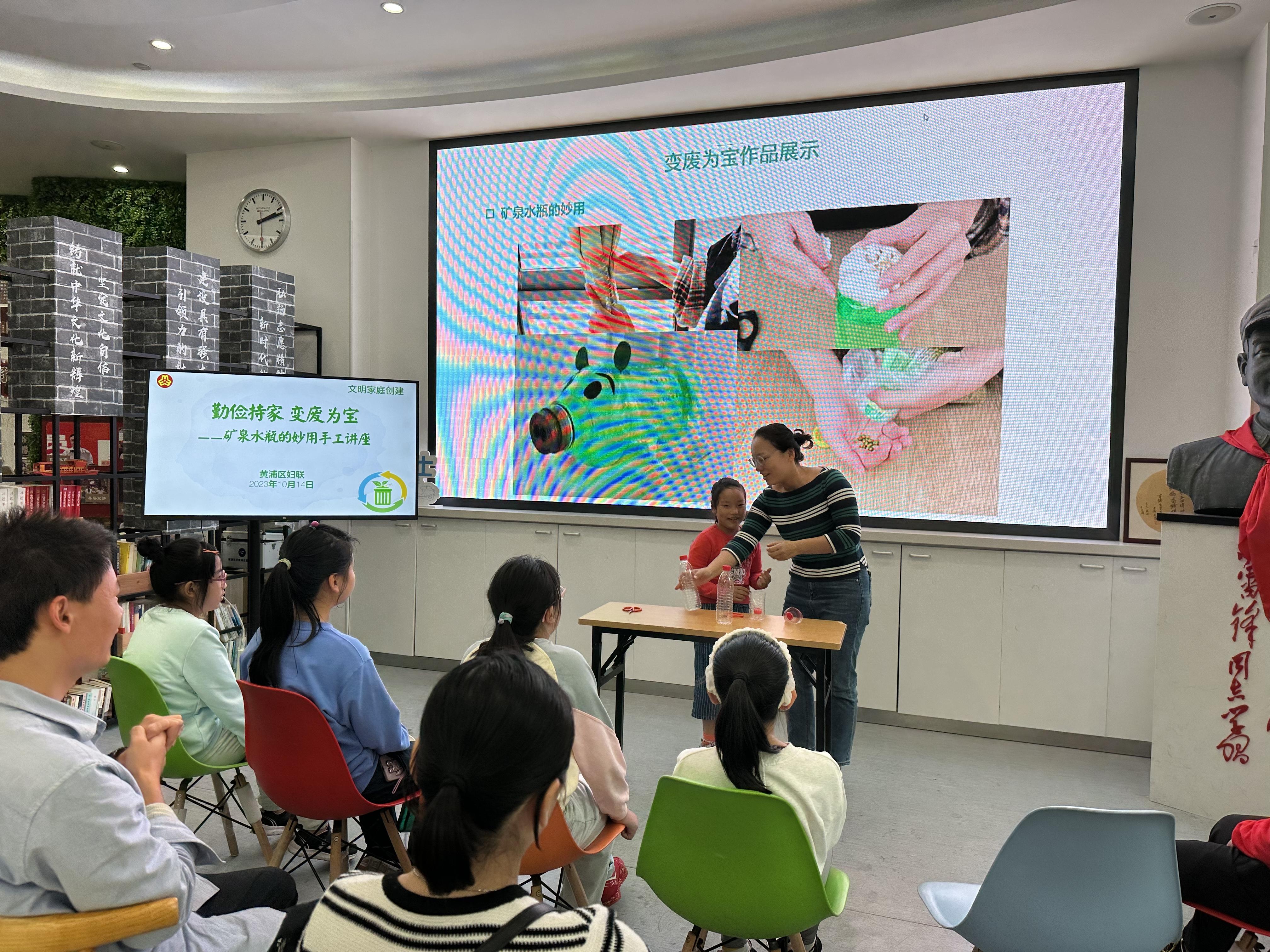 10月14日,黄浦区妇联在豫园街道新时代文明实践分中心开展《勤俭持家 变废为宝——矿泉水瓶的妙用手工讲座》的文明家庭创建活动,不仅聚集了亲子家庭,更是一次以家庭为单位,以勤俭持家为理念的创意和实践。