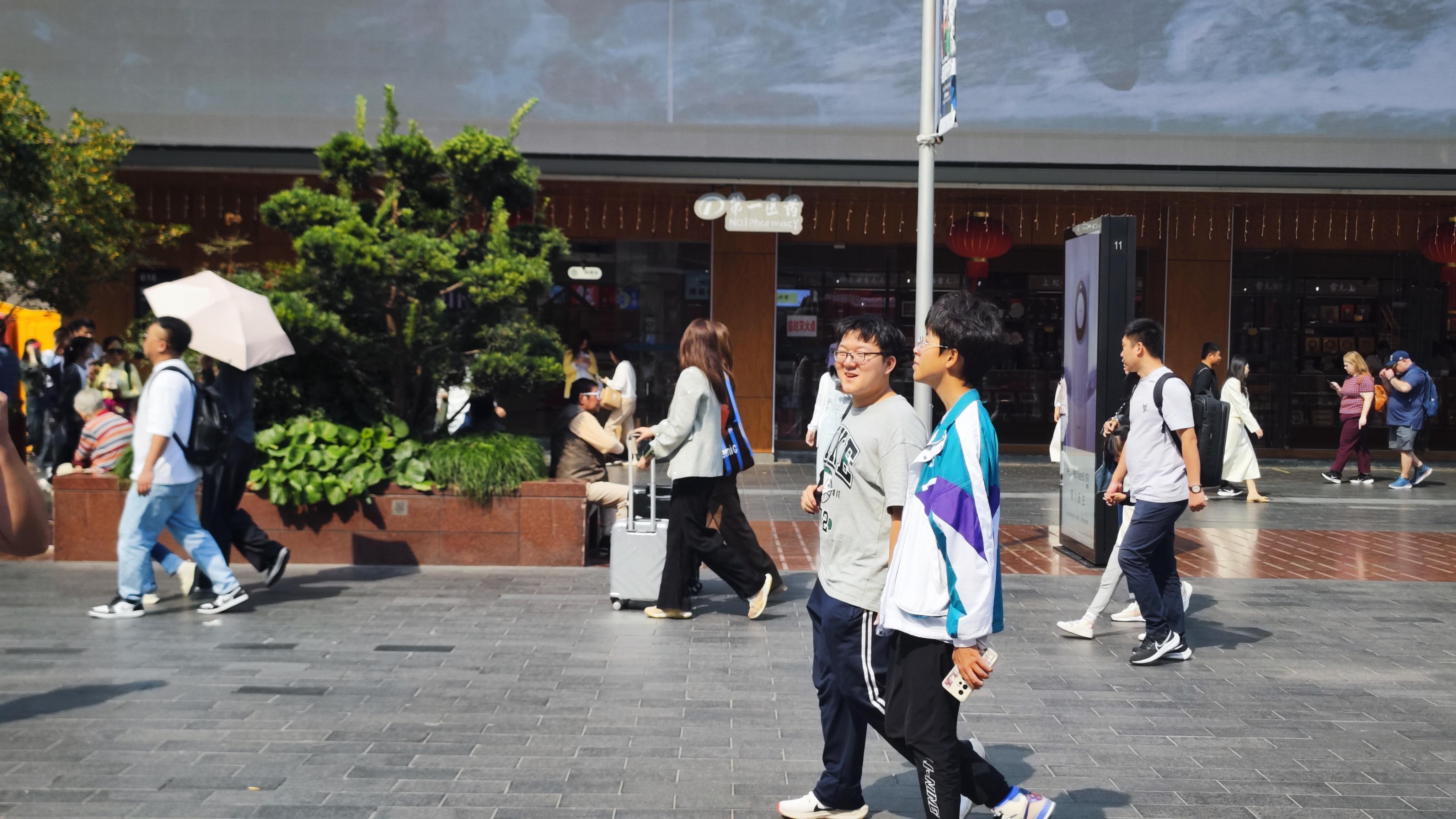 今天是快乐的星期天,太阳也来凑热闹,一早醒来就是满目金黄色的阳光,瞬间让人快乐加倍,而阳光也带来了浓浓的暖意,今天最高气温在25℃,但体感似乎还要更热一些,沐浴在秋日暖阳下,许多行人热得脱下外套,街头的人气十足,逛街、散步、晒太阳都是最佳选择。