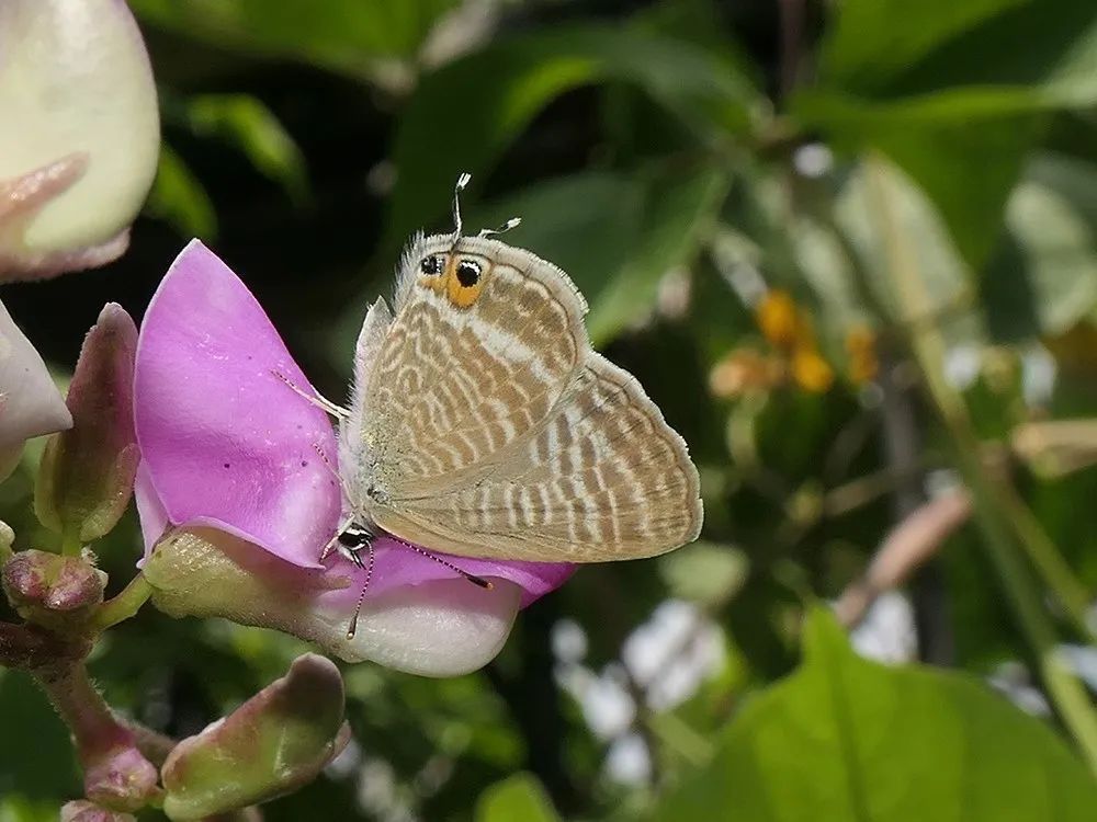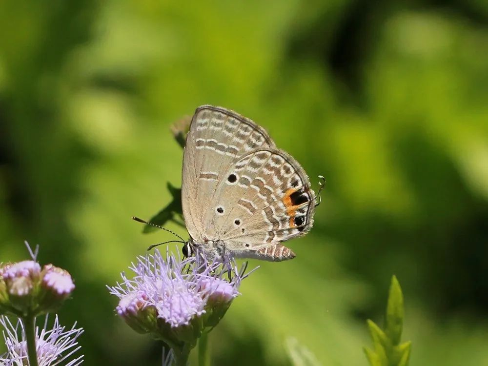 小型蝴蝶。翅背面黑色,翅腹面白色,有许多黑色小斑点。蚜灰蝶常在竹林及附近活动,它们幼虫以蚜虫为食,是绿化养护工人的好帮手!12月之前可见。