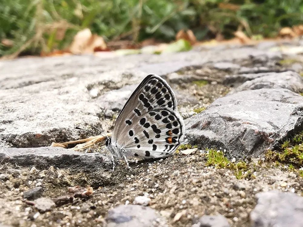 小型灰蝶。翅背面黑色,翅腹面底色灰白色,具许多黑色的小斑。秋季较为多见,飞行速度不快,喜欢贴着地面飞,喜访花吸蜜。12月之前都有机会见到它们。