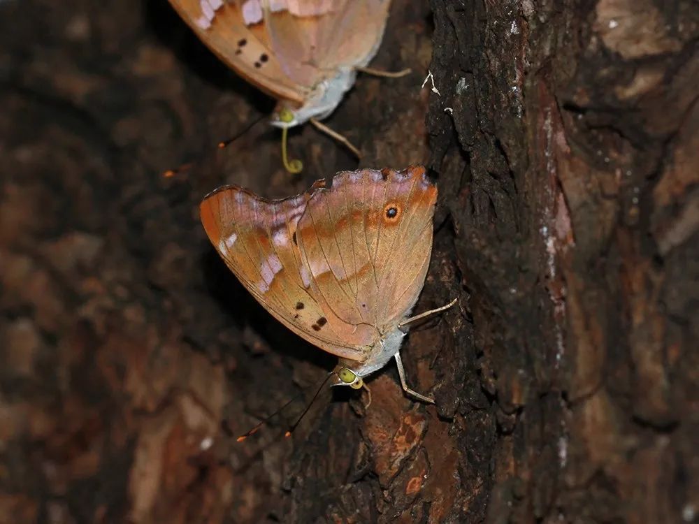 中型蝴蝶,雄蝶翅膀正面在特定角度可以闪出紫色光泽,是典型的蝴蝶鳞片结构色。它们不喜欢访花,却喜欢吸食树干流汁或者在地面吸食露水。种有柳树的区域是观察它们的好地方。11月之前可见。