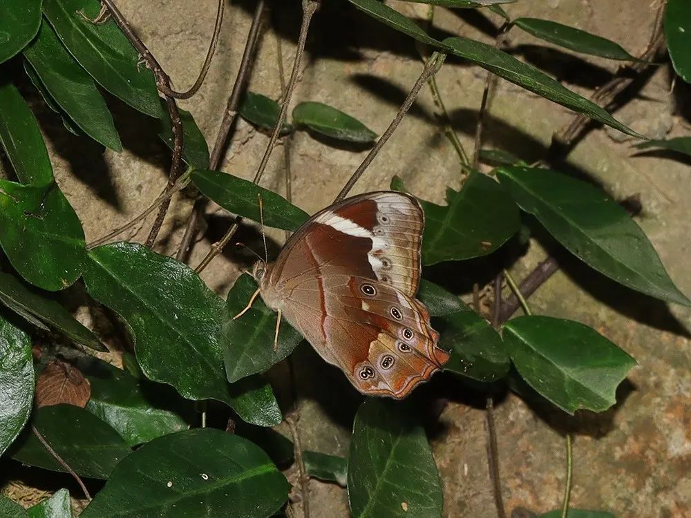 中型蝴蝶,翅膀淡黄褐色,具有眼状斑纹。喜欢在竹林里活动,整个秋季都能见到,在上海地区,松江佘山、天马山等地是它们主要栖息地。11月之前可见。