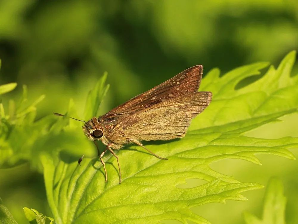 小型蝴蝶,翅褐色,后翅腹面中域具数个白色小斑点呈圆弧状排列。隐纹谷弄蝶外观不艳丽,但秋季数量较多,飞行迅速,喜欢访花吸蜜,公园绿地里经常可见。12月之前都有机会见到它们。