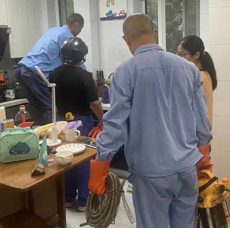 接报后,小区物业管理员和维修人员迅速赶往居民家中。看到反水情况较为严重,他们立即掏出专业工具开始上下疏通管道。然而,半个小时过去了,反水情况并没有得到明显缓解。