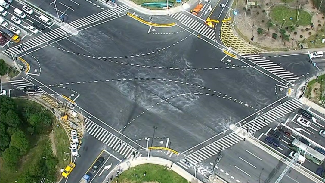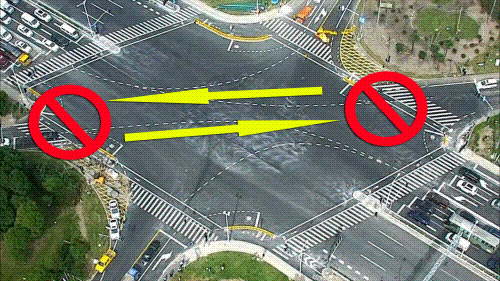 非机动车请按照路口的非机动车信号灯和非机动车二次过街标志标线指示逆时针通行。 特殊提醒:由于非机动车在该路口必须按照图示方向逆时针骑行,可能会对反向至相邻路口的通行需求造成不便。遇到此类情形,请按照人行信号灯指示顺时针推行非机动车至相邻路口。