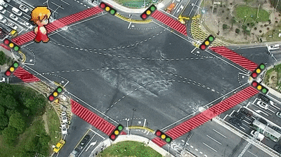 非机动车和行人都不能直接横穿路口,避免发生交通事故。 机动车、非机动车及行人只要注意观察自己所在车道正前方对应的机动车、非机动车和人行信号灯的显示状态,按照信号灯的指示行驶和行走,就不会发生交通冲突。因此,一定不要闯信号灯!
