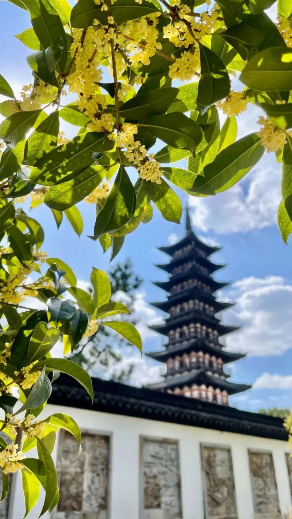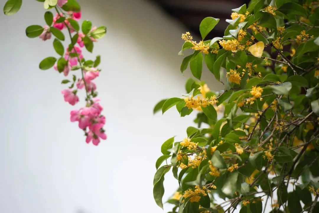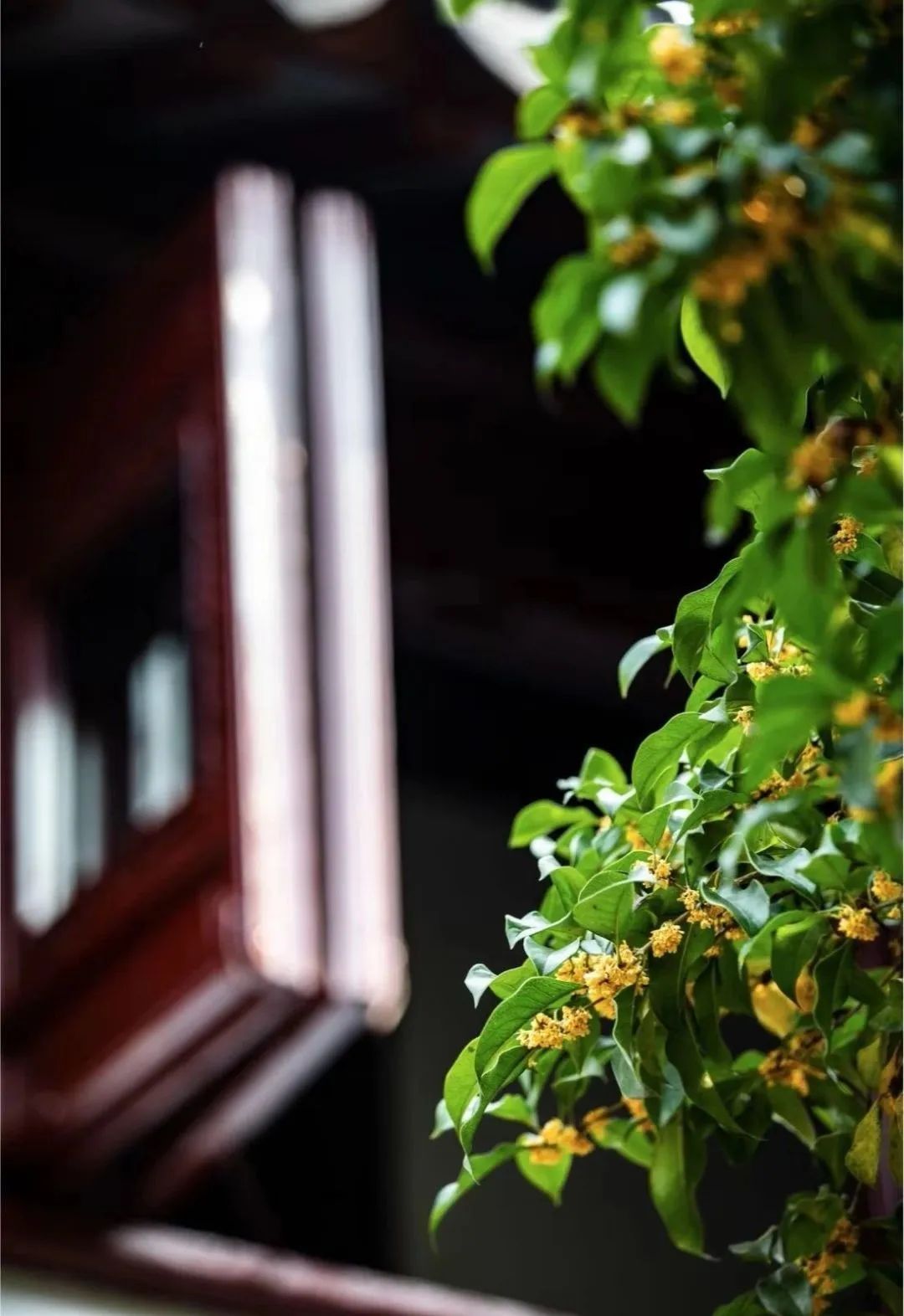 园内的桂花散落在各个角落,每一株都能与白墙黛瓦、楼堂亭榭相互映衬,形成精致又富有意境的风景画,满满的诗情画意。