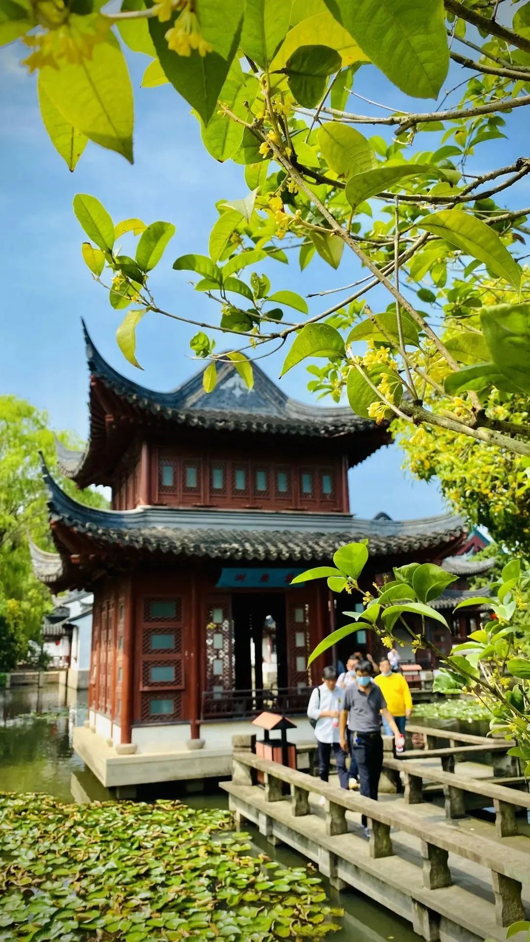 现下别致清幽的古典园林和馨香甜蜜的桂花搭配,别有一番滋味,快来古猗园“闻香识桂花”吧!