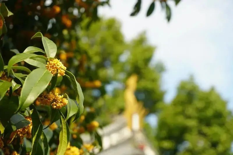 此时园内桂花已竞相开放,金灿灿的花瓣成团簇拥,沉甸甸地压满枝头,成了赏桂打卡点。