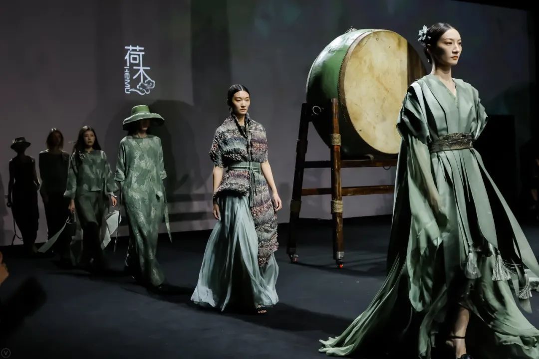 值得一提的是,此次大秀还邀请中国优秀艺术乐团“青瓷瓯乐团”现场演奏,20位乐手艺术家与现场模特共同呈现一场关于“风雅”的颂歌。“这不仅是一场视觉盛宴,更是一次听觉享受!”观众窦女士说,“‘荷木HEMU’的设计让我看到了传统服饰与现代走秀的结合。这种结合不仅体现在服装设计上,也体现在音乐表演上。乐团的表演风格、艺术气质以及乐器色彩,与大秀主题非常契合。”