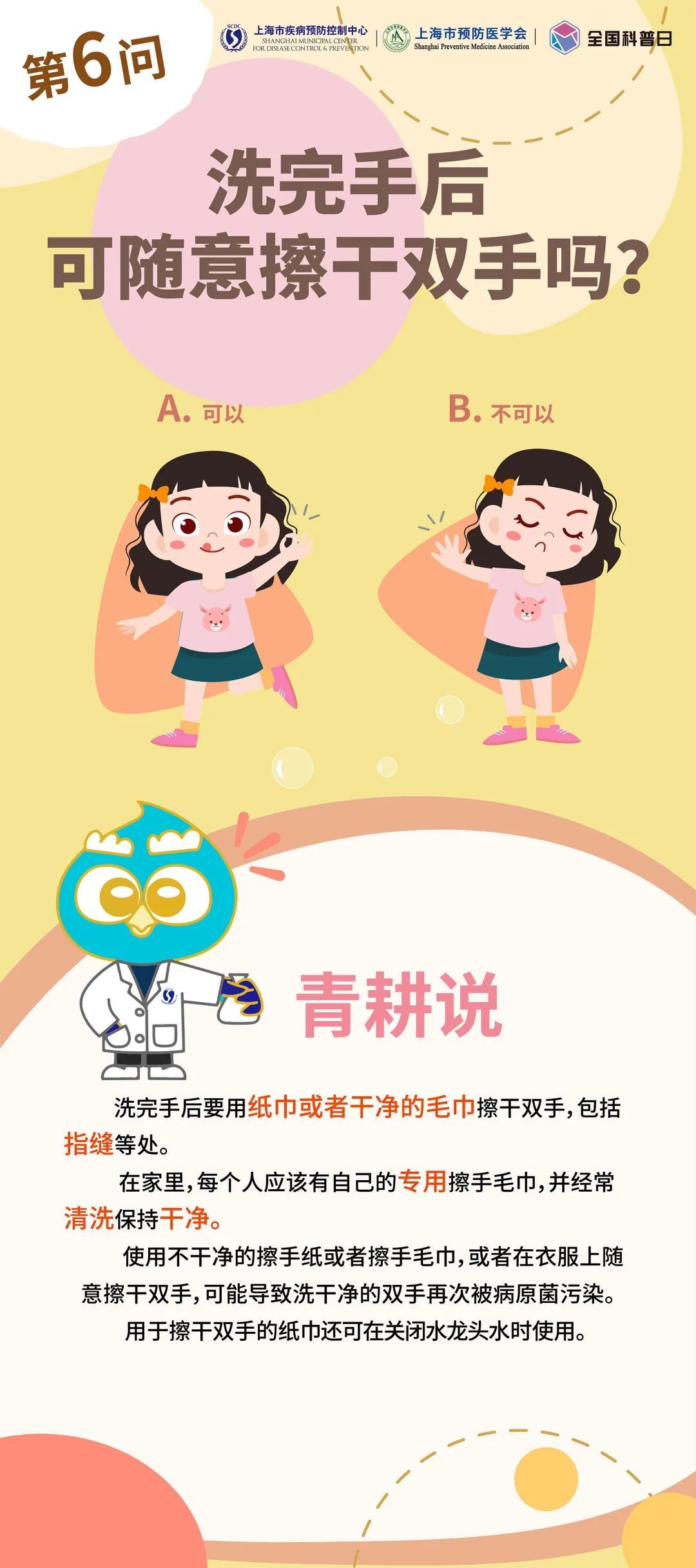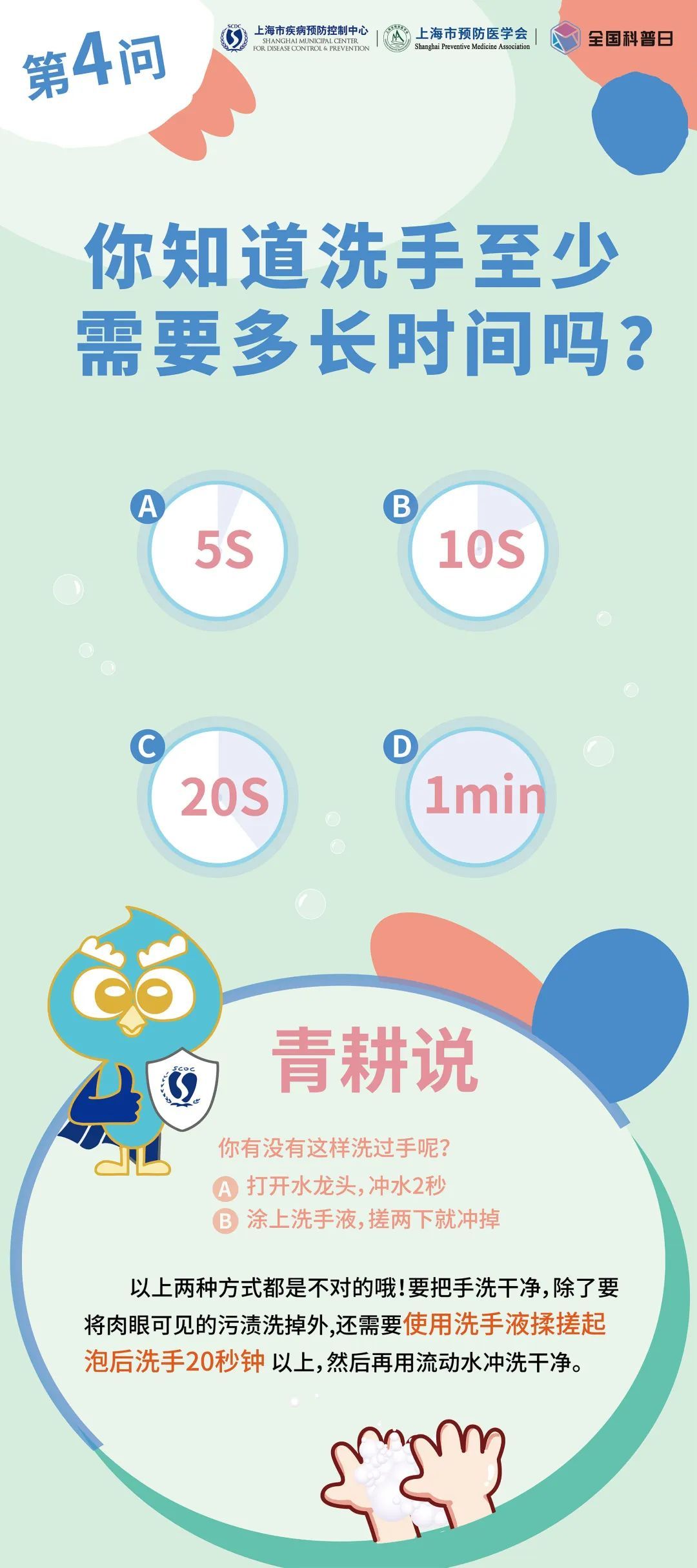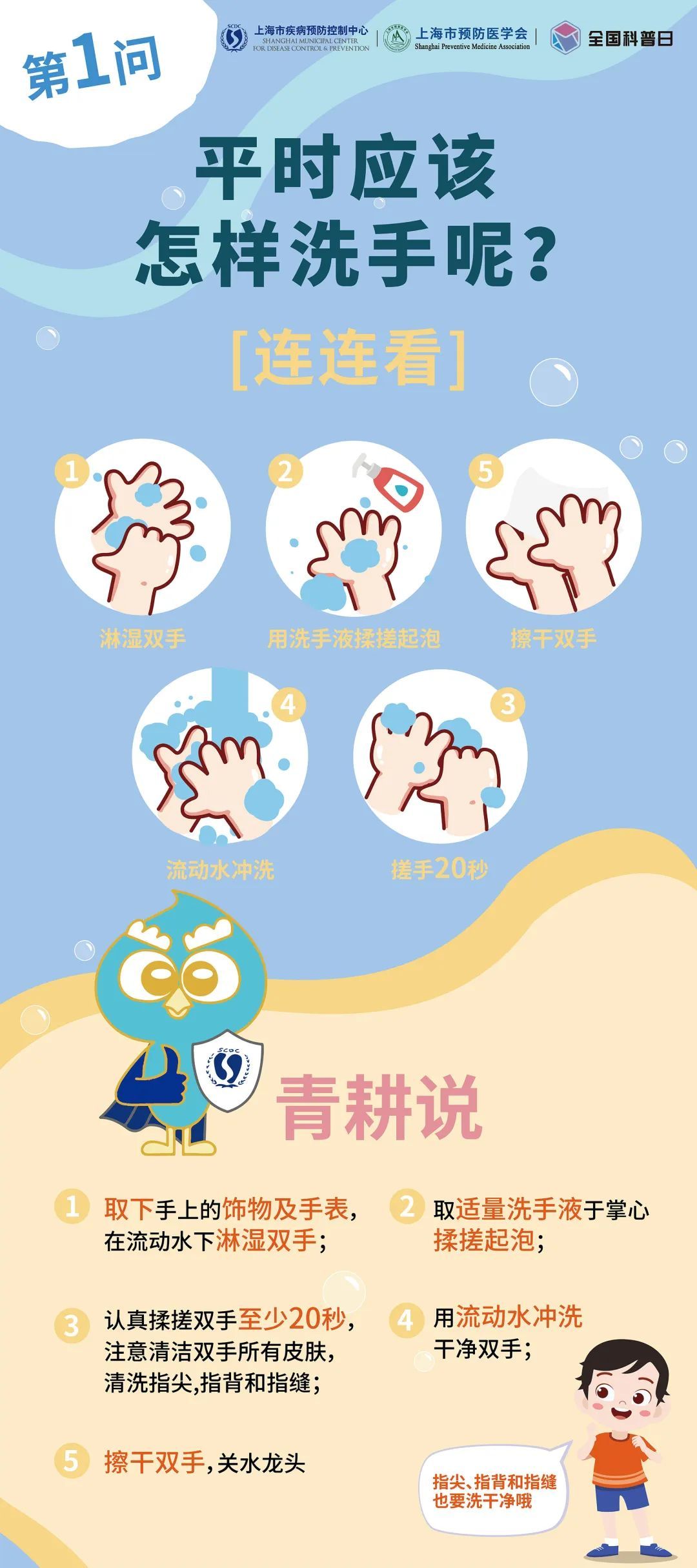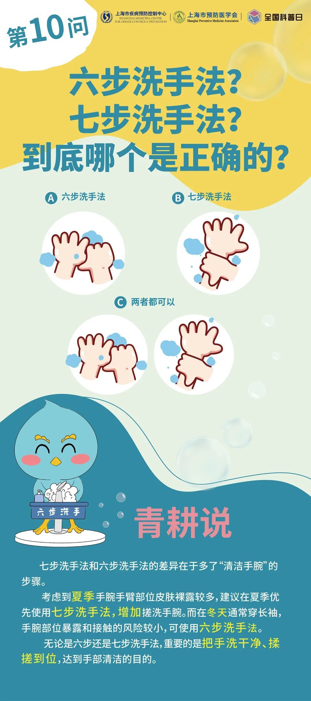 10 月 15 日是全球洗手日,今年的主题是“干净的手 触手可及”。在上海市卫生健康委员会的指导下,上海市疾病预防控制中心和上海市预防医学会联合主办了“ ‘手’护长幼 共享健康”第三届“小习惯 大健康”洗手日科普活动。洗手虽然是一项简单的卫生小习惯,但许多人对这个过程存在一些误区。让我们一起回答10个洗手的问题,帮助你更好地掌握正确洗手,保护自己和他人的健康。
