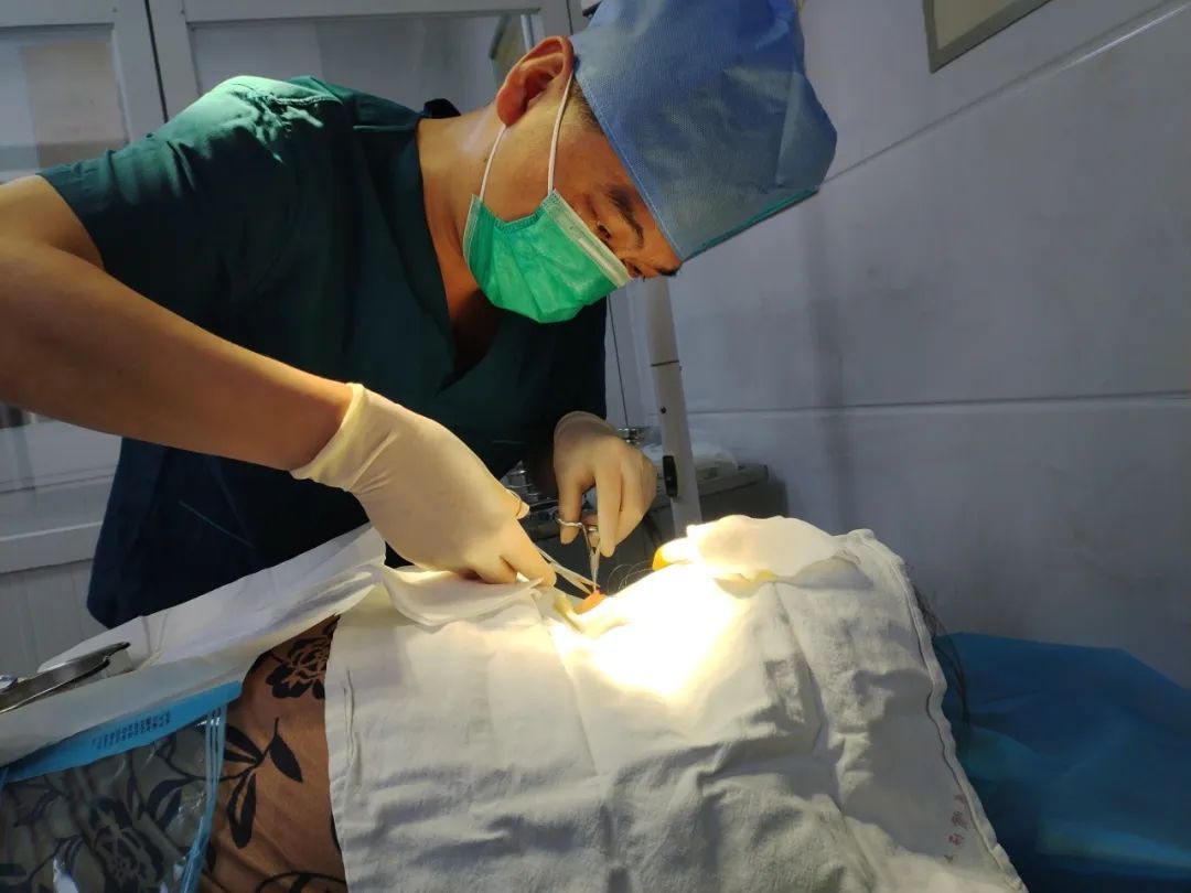图为杨贤炜医生在门诊手术室进行手术