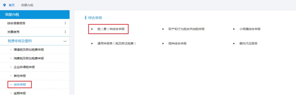 登录【电子税务局】-【我要办税】-【税费申报及缴纳】-【综合申报】-【税(费)综合申报】