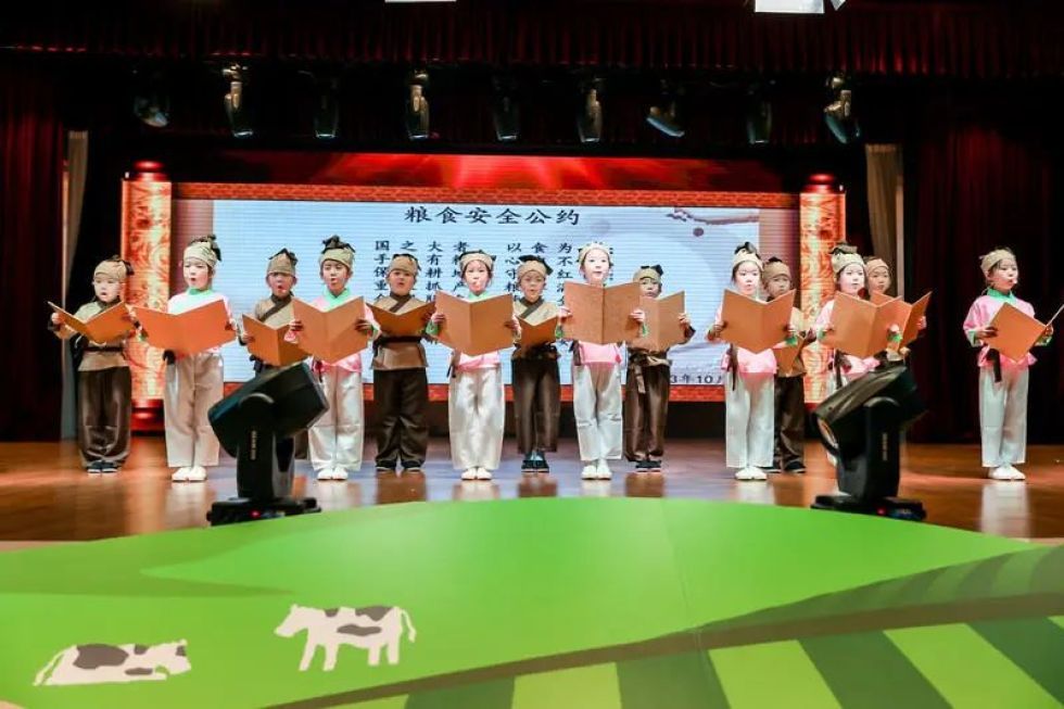 “国之大者,以食为天;手中有粮,心中不慌。保护耕地,守牢红线;重农抓产,粮谷满仓。合理膳食,营养全面;爱粮节粮,光盘风尚。人人尽责,家家示范;天地‘粮’心,幸福安康。”浦东还率先发布了“64字粮食安全公约”,为促进高质量发展,实现高品质生活贡献力量。