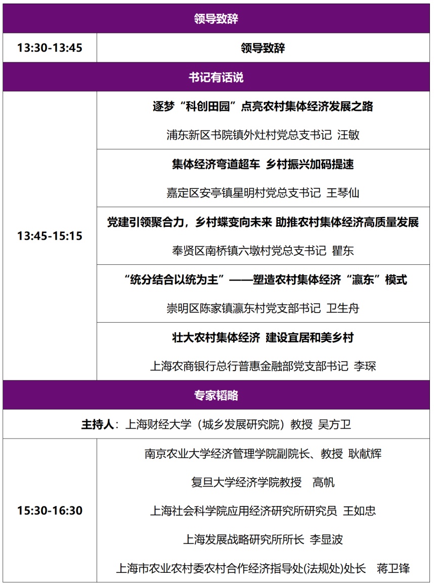 本次“乡村振兴 书记论剑”暨“上农论坛”,以“发展新型农村集体经济,筑牢共同富裕基石”为主题,聚集政、产、学、研各界智慧,旨在倾听前沿声音,激发不同思想的交流碰撞,厘清上海市新型农村集体经济未来发展方向,为上海市乡村振兴建言献策。