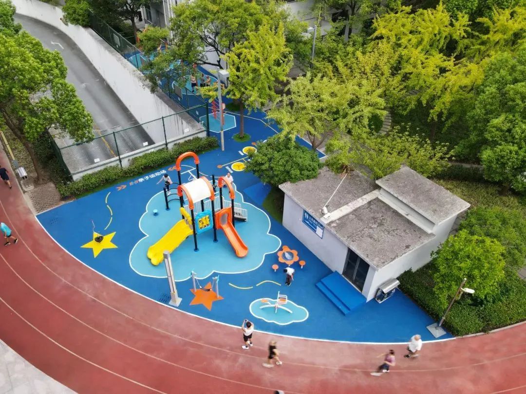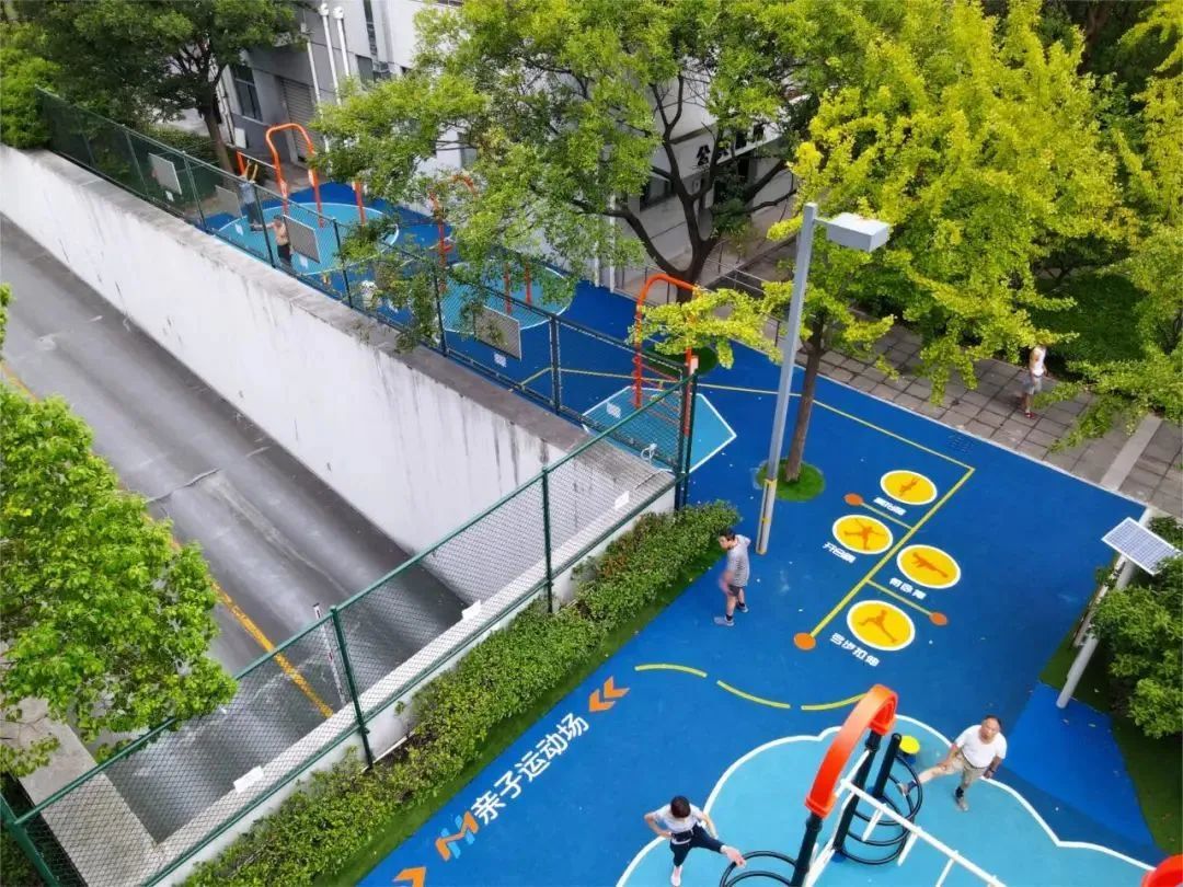 在整体区域提升中主要以儿童活动和健身运动为两大主题,在之前只满足老中青锻炼的传统健身器材的功能上拓展了青少年、儿童等活动区域,利用闲置空间打造了一处户外亲子运动场,能够同时满足儿童游戏和市民健身的多元需求,积极推广运动科学化、智能化、场景化为一体的运动休闲新理念。