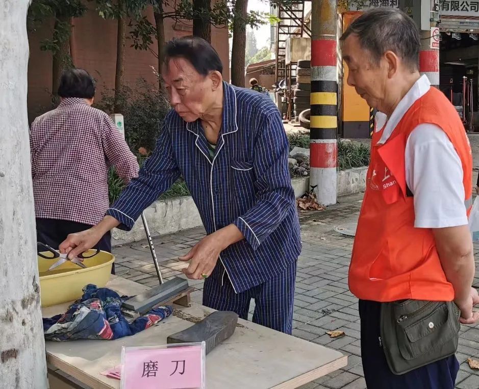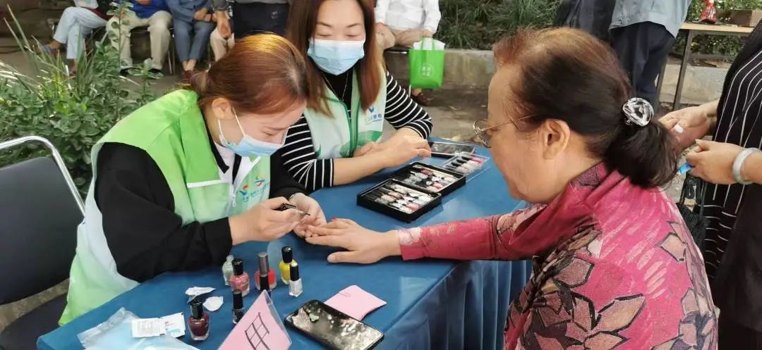 活动现场选在淞南新村门口,长江路第一居民区党总支联合周边6家共建单位开展暖心服务。活动包含理发、磨刀、量血压、测血糖、中医义诊、康复义诊、长护险咨询、法律咨询、加装电梯咨询、美甲等多项服务,既有传统项目,也有特色内容,充分满足居民们日常生活中的各项需求。各志愿服务摊位前人头攒动,十分热闹,居民们纷纷走向自己感兴趣的摊位,咨询相关信息,享受贴心服务。王阿姨向医生咨询身体情况后,来到美甲的摊位上兴致勃勃地做起美甲,她表示爱美之心人皆有之,身体健康的同时自己的心情更好,家门口的便民服务也越来越贴心了。