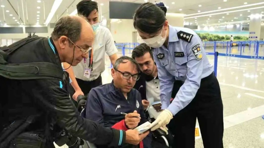 “一共177名运动员、官员、医护人员,其中有34名轮椅旅客,引导查验工作准备到位。”当天上午10时08分,伊朗代表团成员搭乘W5077航班一落地,便被提前等候在客舱门口的上海移民管理警察热情引导至“中国边检亚残运会专用通道”。一路上,廊桥口的无障碍电梯、移民管理警察的暖心陪伴,为赛事人员创造了便利通关环境,更让整个查验流程“加速”。