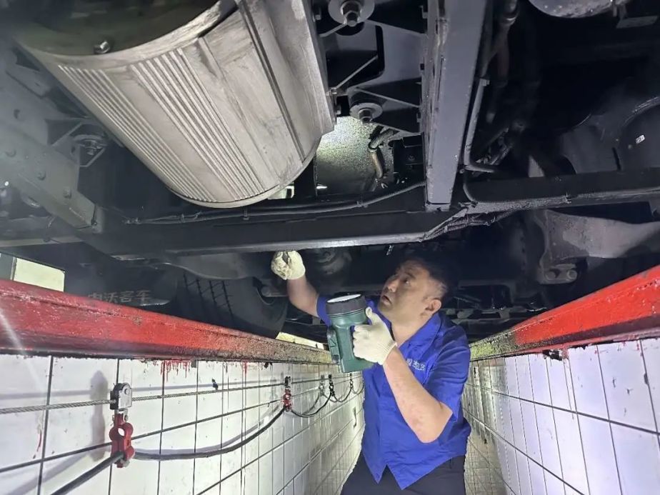 为了做好车辆换新准备,杨高公交还分批次提前组织线路驾驶员开展组训,全面了解新车布局,尽快熟悉操作。在新车抵达时,机务人员第一时间对车辆底盘、电池舱、控制器、车厢等软硬件设备进行检查,确保GPS、DVR等监控设备正常运作,确保车辆车况完好,同时连夜对线路图、走向图以及各类标识进行张贴,确保市民乘客能在最快的时间体验到这批新车。