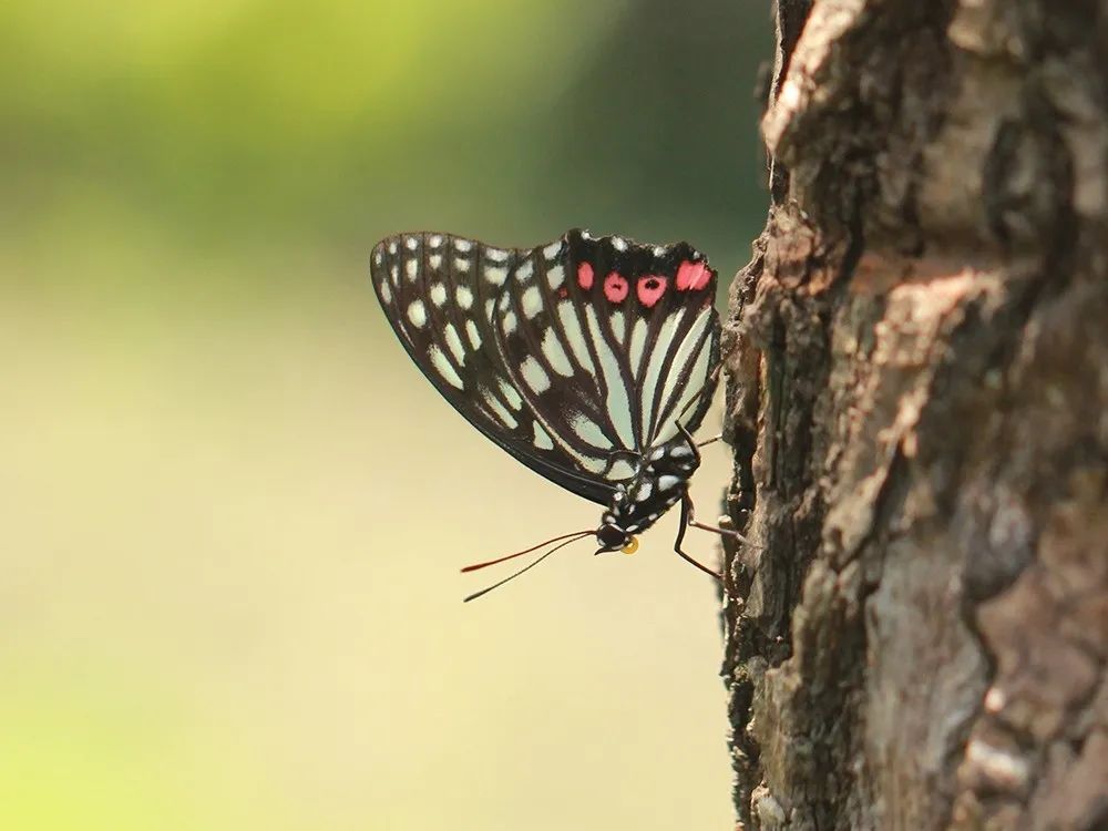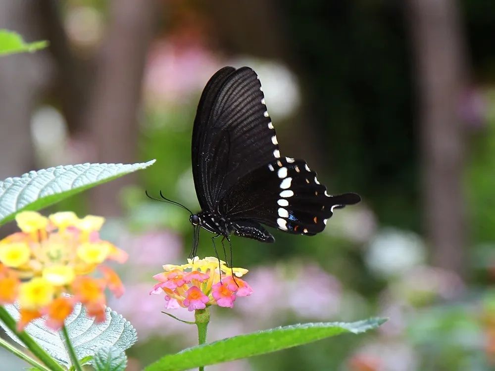推荐各个森林公园、动物园、植物园、郊野公园以及市中心许多精美的生境花园、口袋公园等,都是观赏秋蝶的好地方。此外,大家需要寻找花坛里的一些美丽花卉,比如八宝景天、五色梅、大花醉鱼草、马利筋、千日红以及各种菊花等,这些花卉都是蝴蝶喜欢的蜜源植物,会吸引许多蝴蝶前来访花吸蜜。除此之外,种植榆树或柳树的树林、竹林以及乡村的菜园,也是蝴蝶经常出没的小生境。